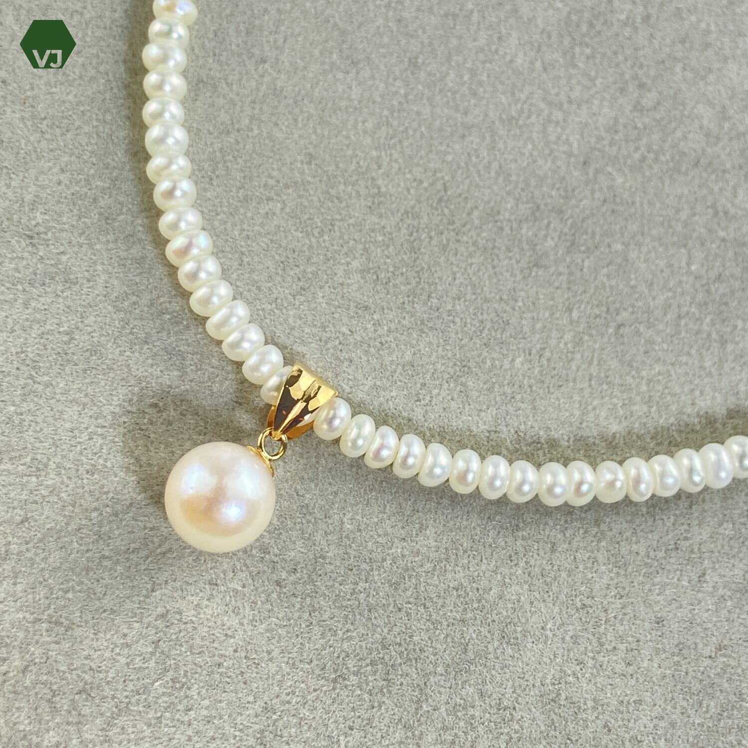 ベビーパールの愛らしい照りと、K18イエローゴールドの温かみある輝きが調和したネックレスです。長さは約42㎝と首元に美しく沿うサイズ感。トップのパールは直径約7.5㎜、上品な存在感を放ちます。総重量は7.40g、新品仕上げ済みでとても綺麗な状態です。普段使いにもフォーマルシーンにもおすすめの一品です。
