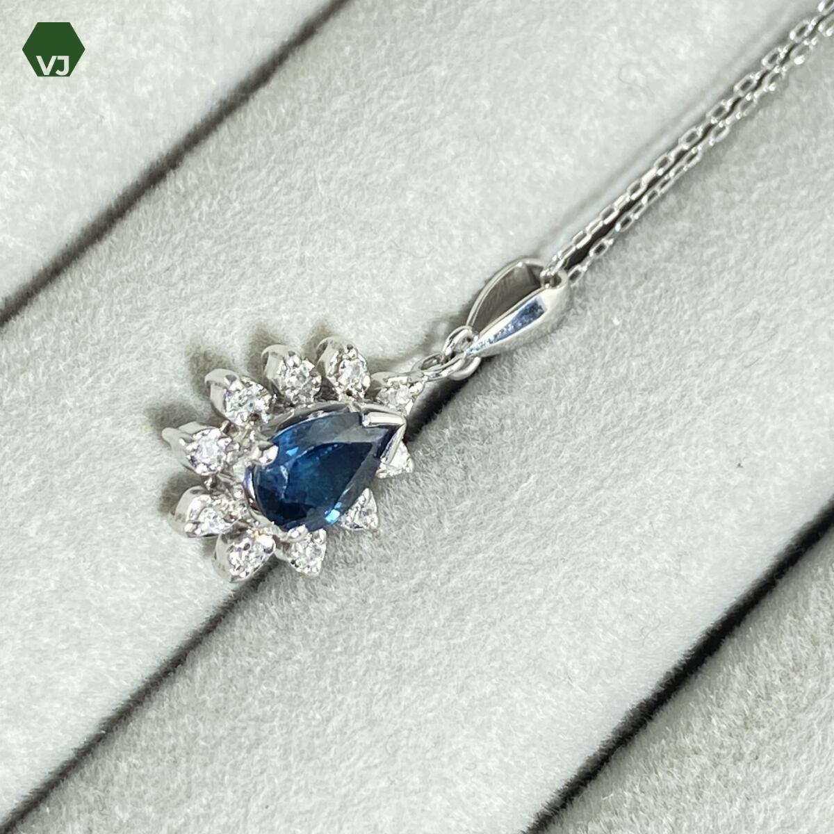 深みのあるブルーが魅力のサファイアを中心に、繊細なダイヤモンドをあしらった K18WG/K14WG サファイア&ダイヤモンド ネックレス です。