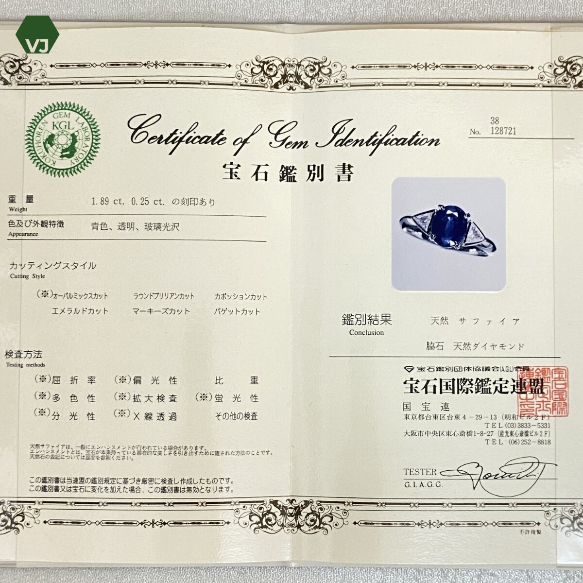 ✔ サファイア1.89ctの落ち着きあるブルーカラー