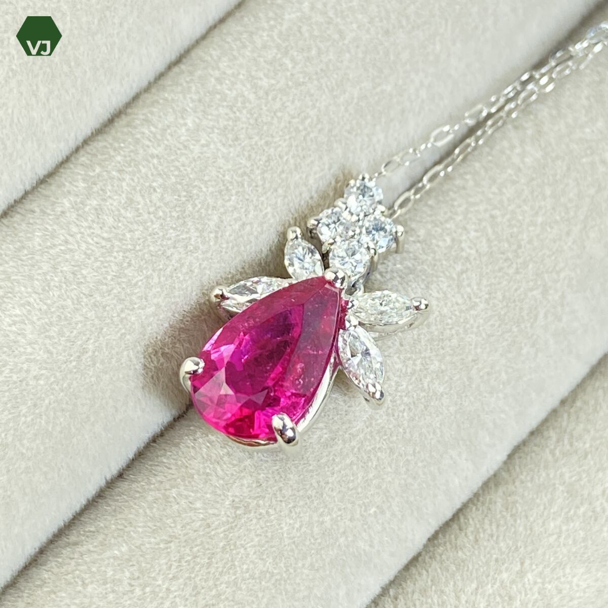 存在感のあるペアシェイプカットが胸元を美しく彩り、エレガントな印象を演出します。