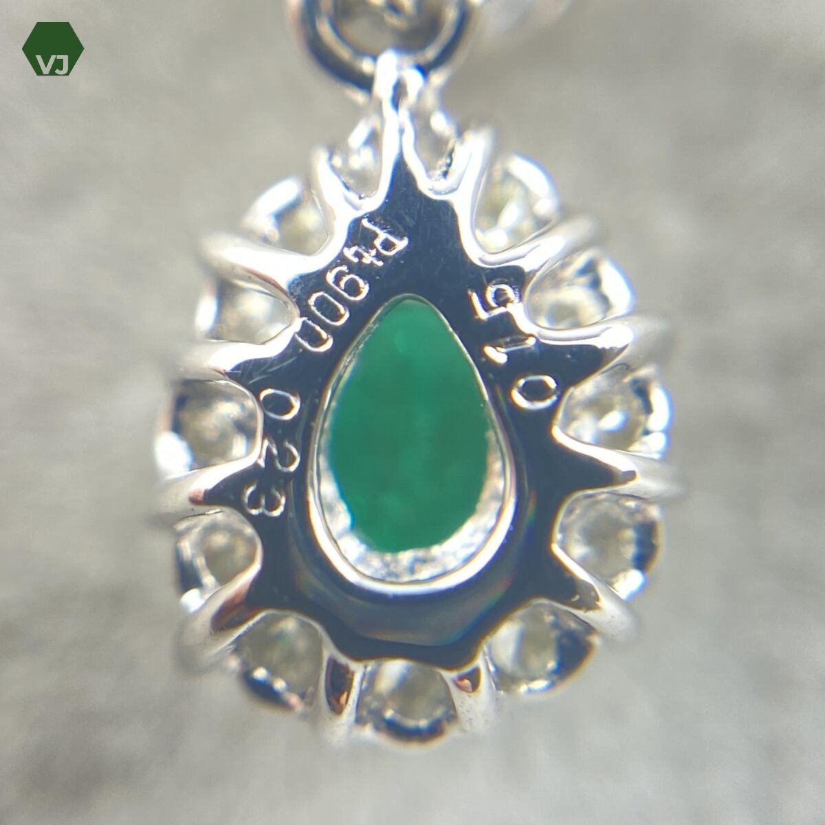 センターには 0.23ctのペアシェイプカットのエメラルド をセッティング。