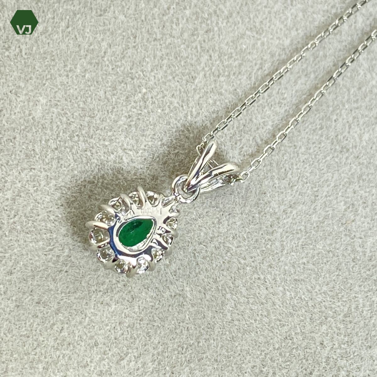 【33-13】エメラルド ダイヤモンド ネックレスE0.23ct D0.15ct 【中古】【PT900/PT850】【40㎝】★By vivid-J