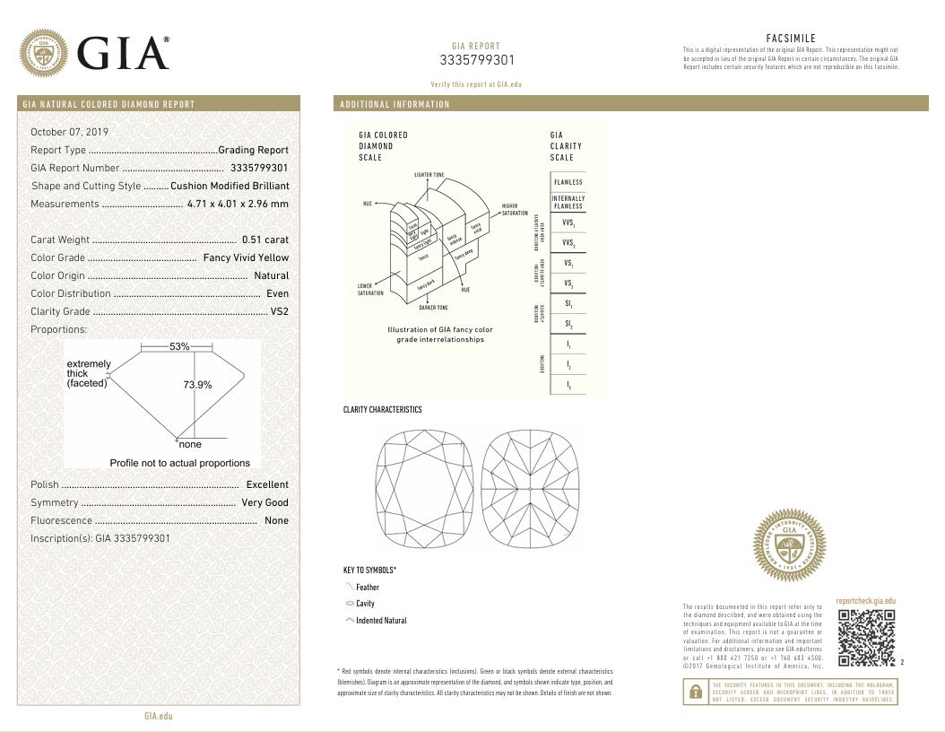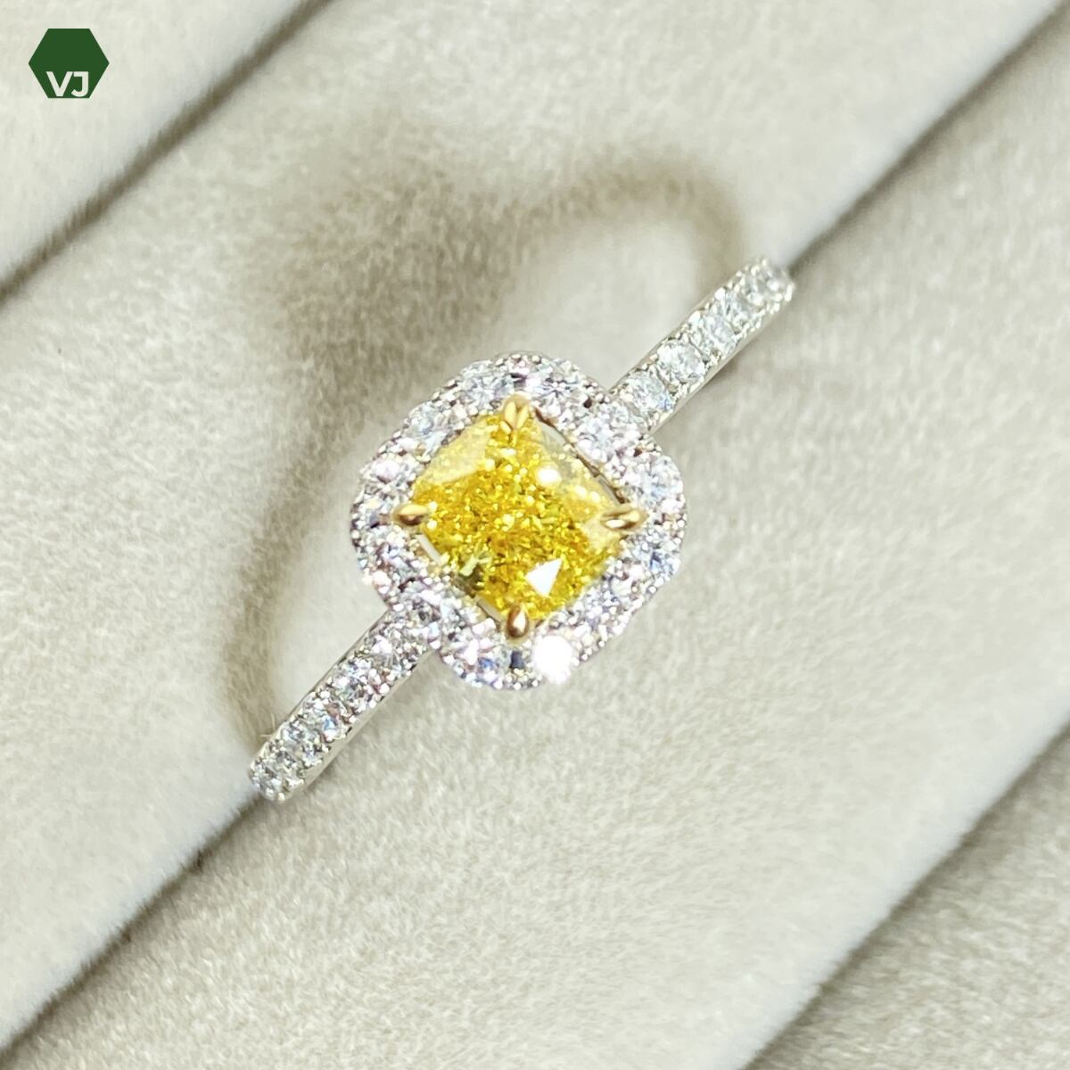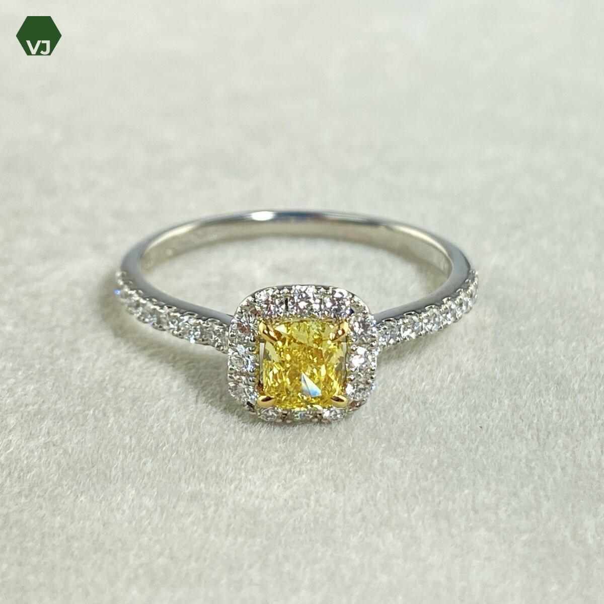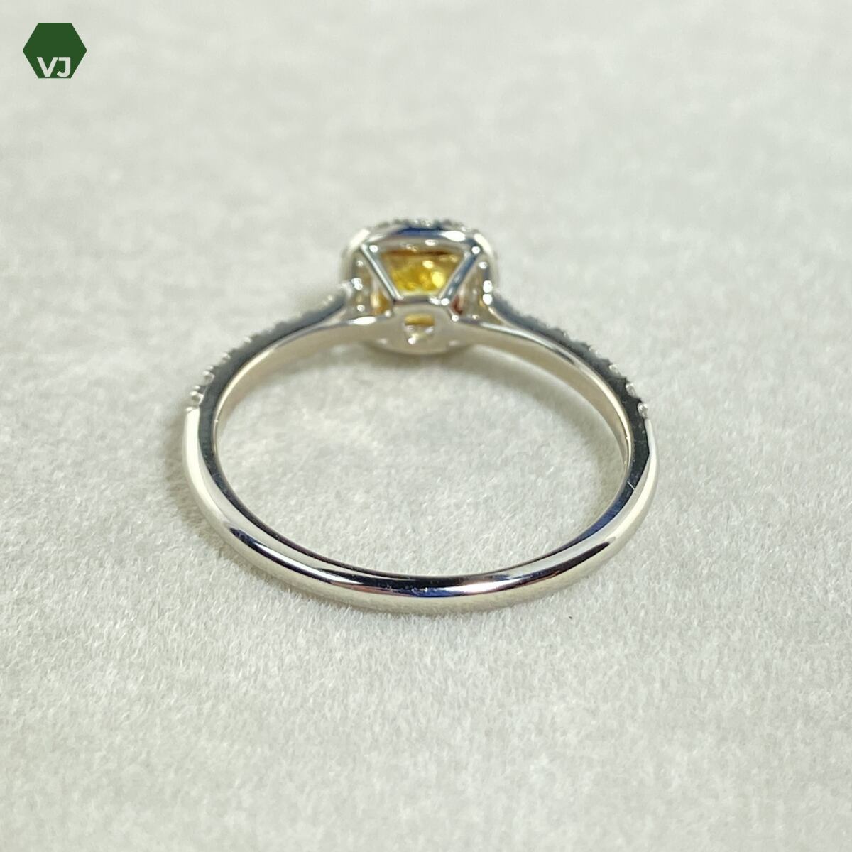 ファンシーカラーダイヤモンドの中でも特に評価の高い VIVIDカラー(Natural) ならではの、濃く鮮やかなイエローの輝きが印象的です。