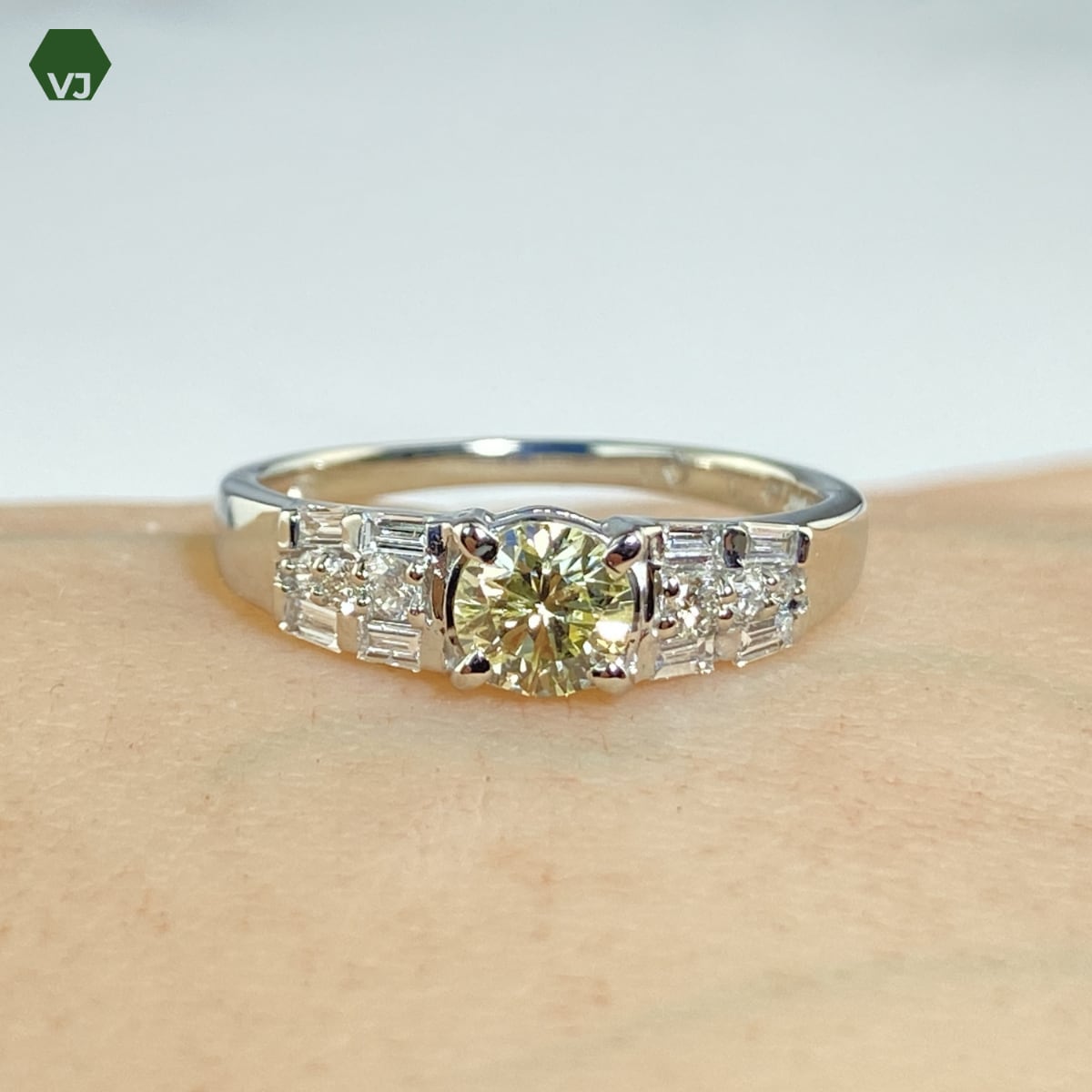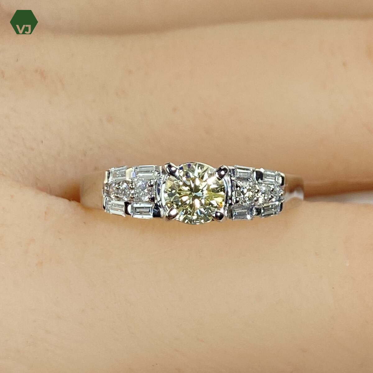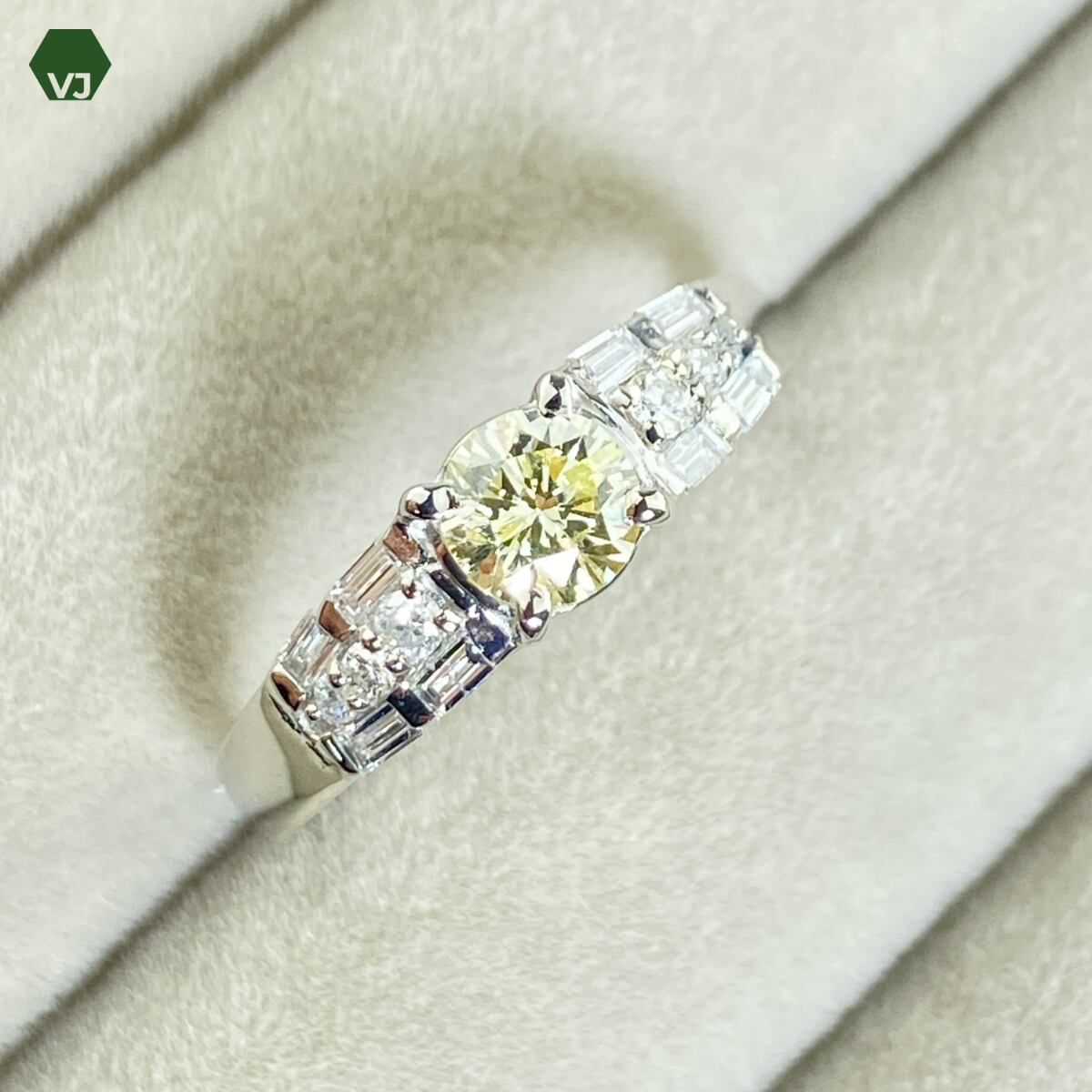 両サイドには 計0.3ctのダイヤモンド をバランスよく配置し、センターダイヤの輝きをより一層引き立てるデザインとなっております。