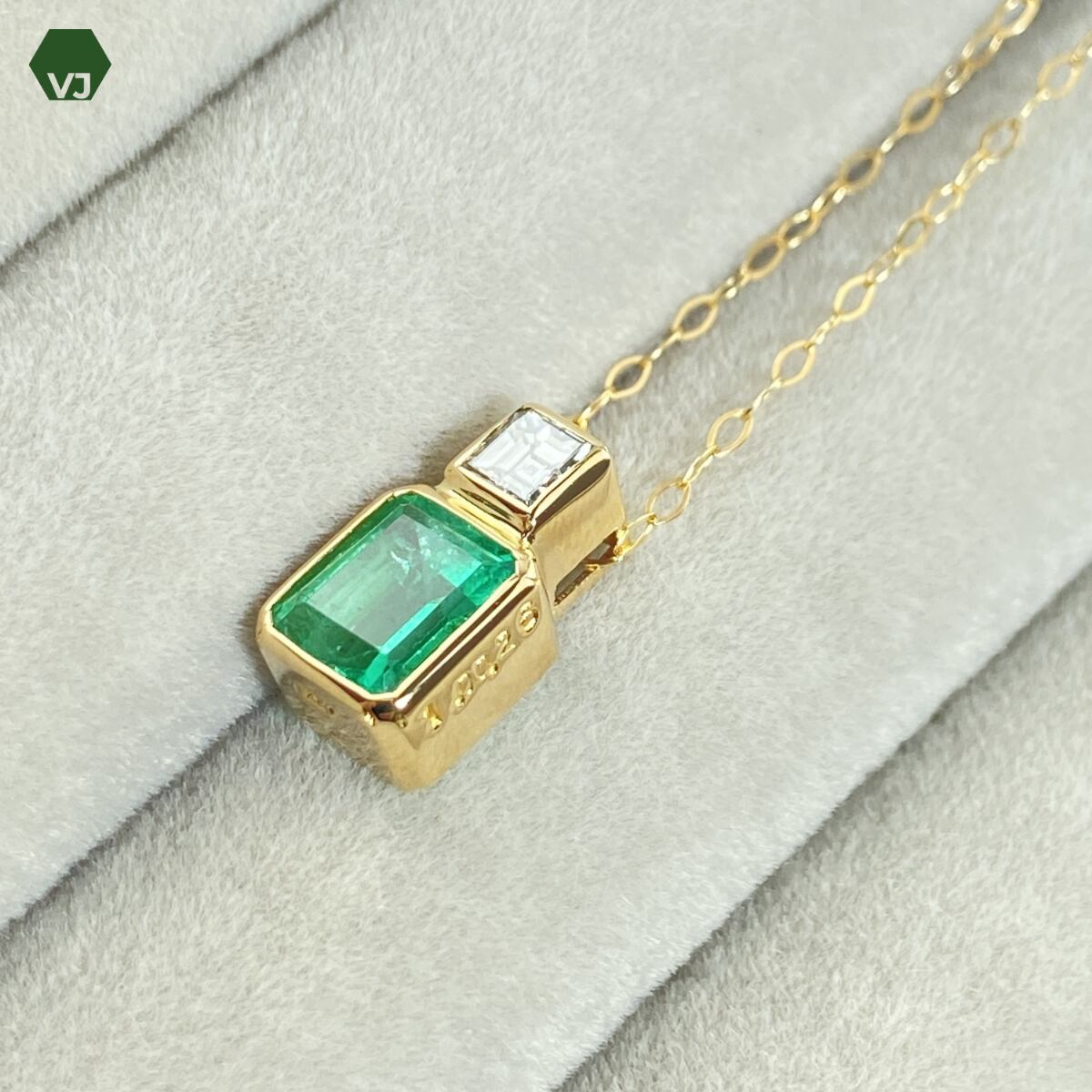 素材には K18YG(イエローゴールド) を使用し、エメラルドの美しい色合いをより一層引き立てています。