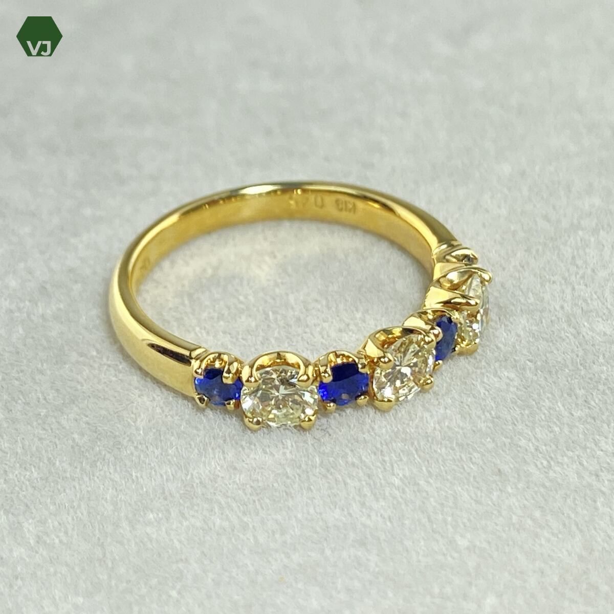 【33-25】サファイア ダイヤモンド リング S0.45ct D0.7ct【中古】【K18YG】【11.5号】★By vivid-J