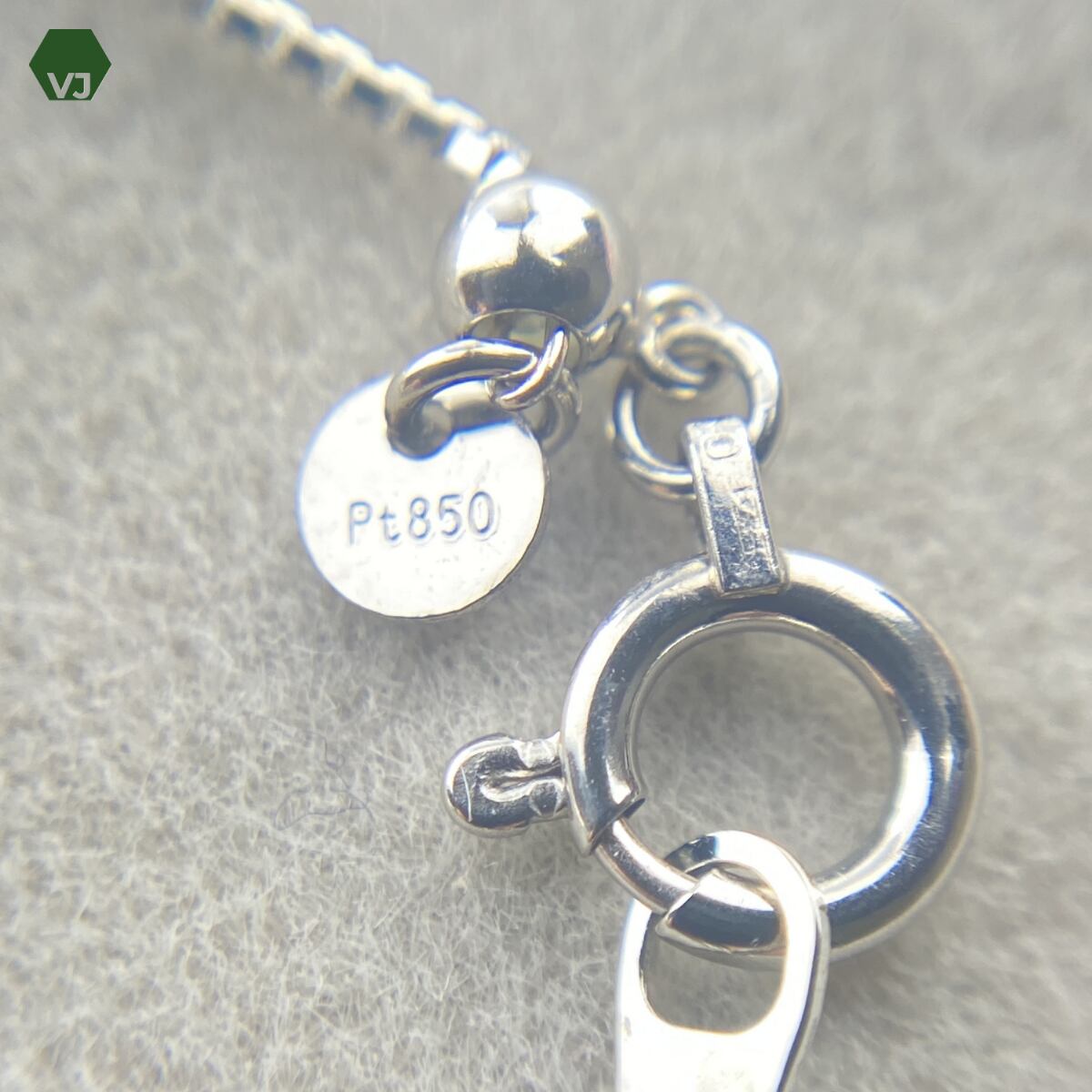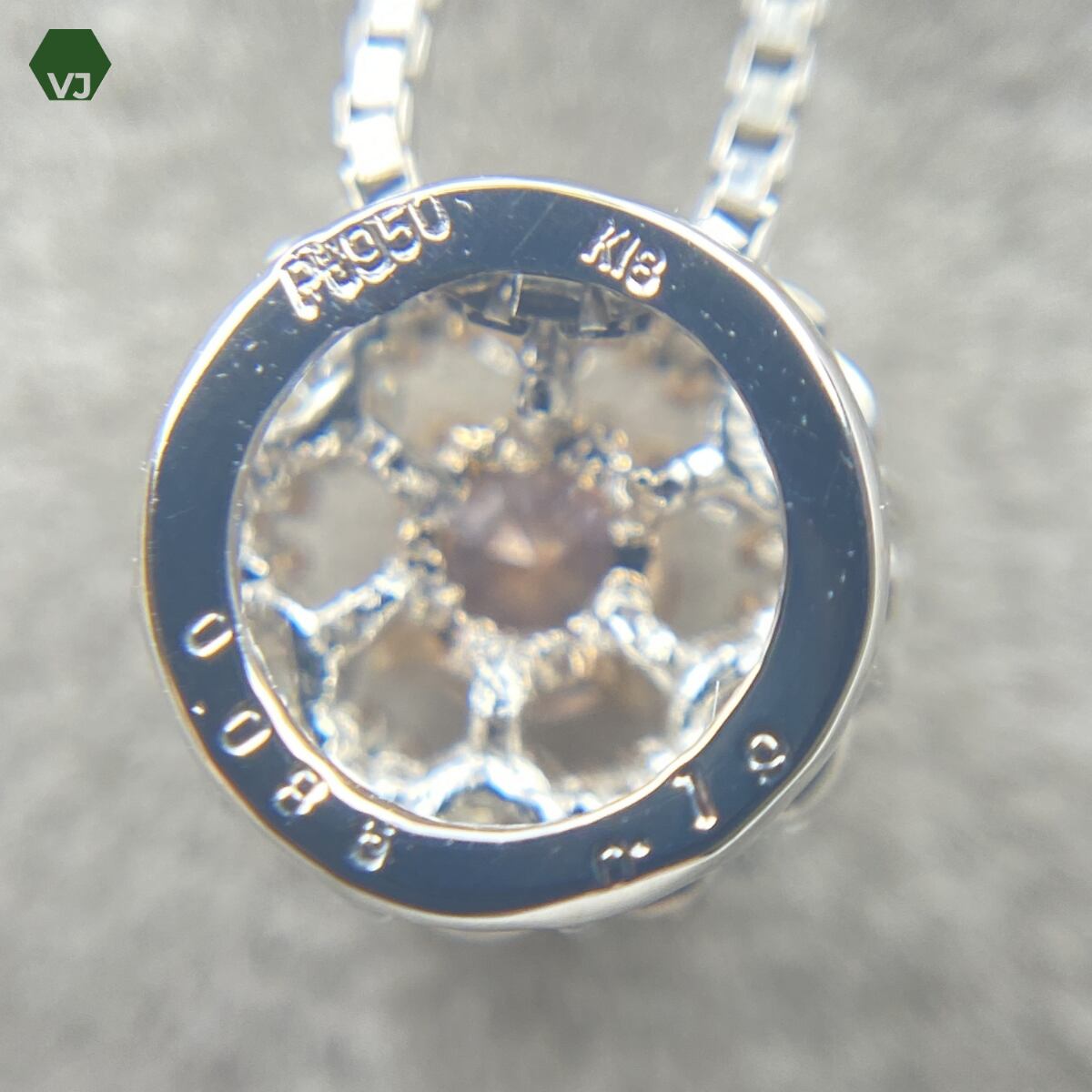 トップにはPT900をベースに一部K18イエローゴールドを使用し、異素材の組み合わせがデザインにアクセントを加えています。チェーンはPT850のスライド調整付きで、シーンに合わせて長さ調整が可能です。