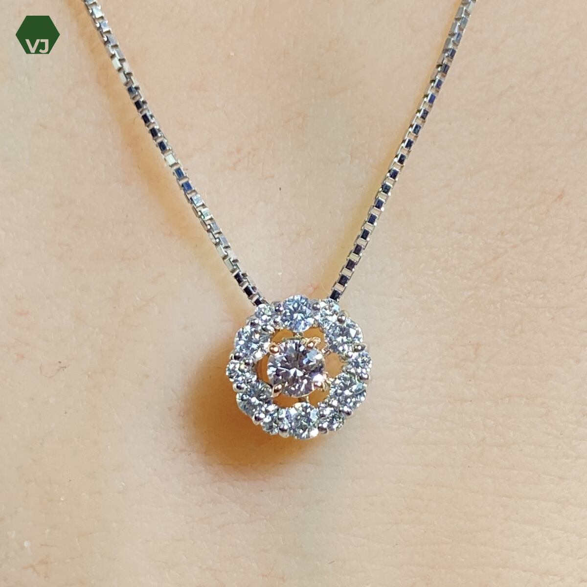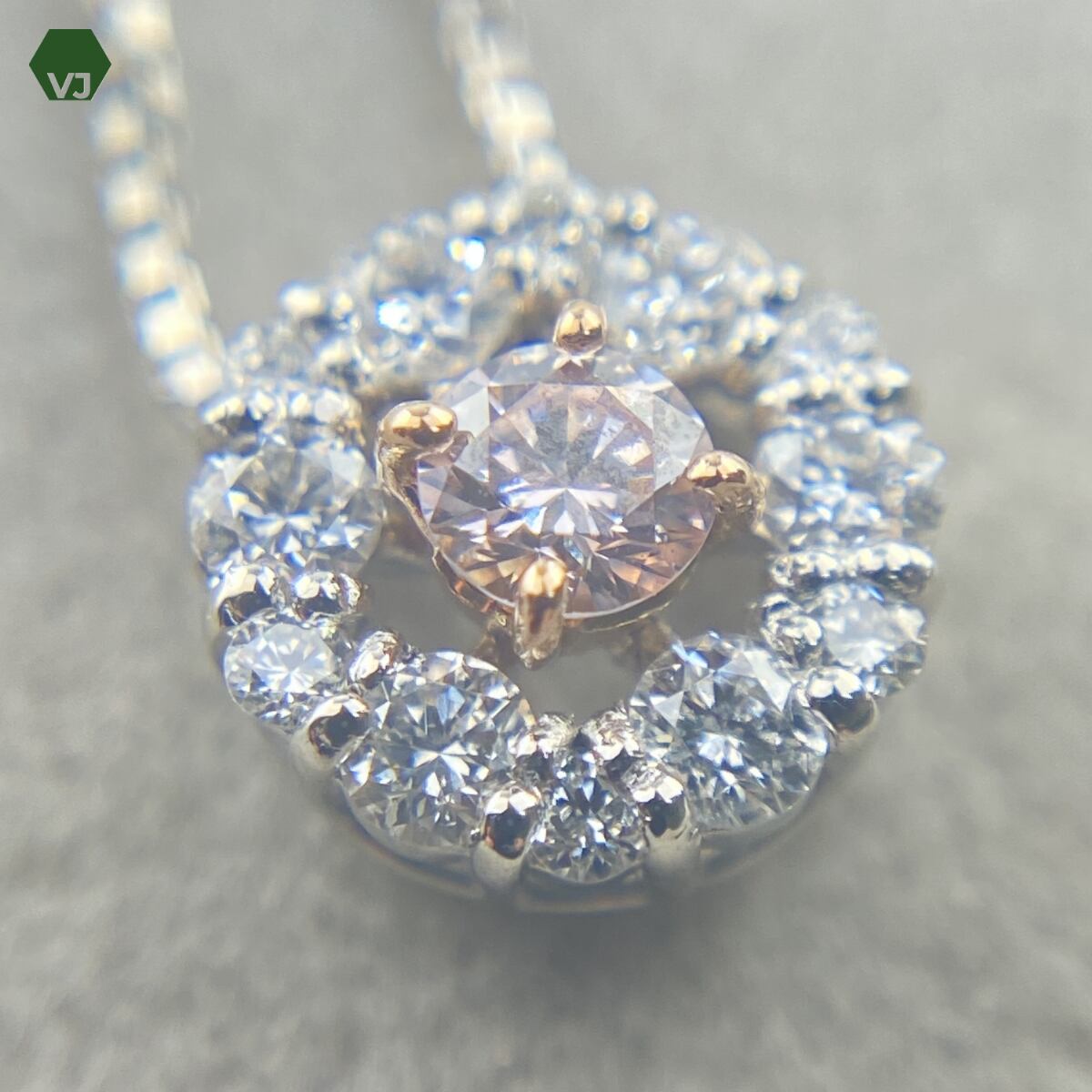 メインにはトータル0.19ctのピンクダイヤモンドをセッティング。柔らかく優しい色合いが魅力で、胸元にさりげない華やかさを添えます。