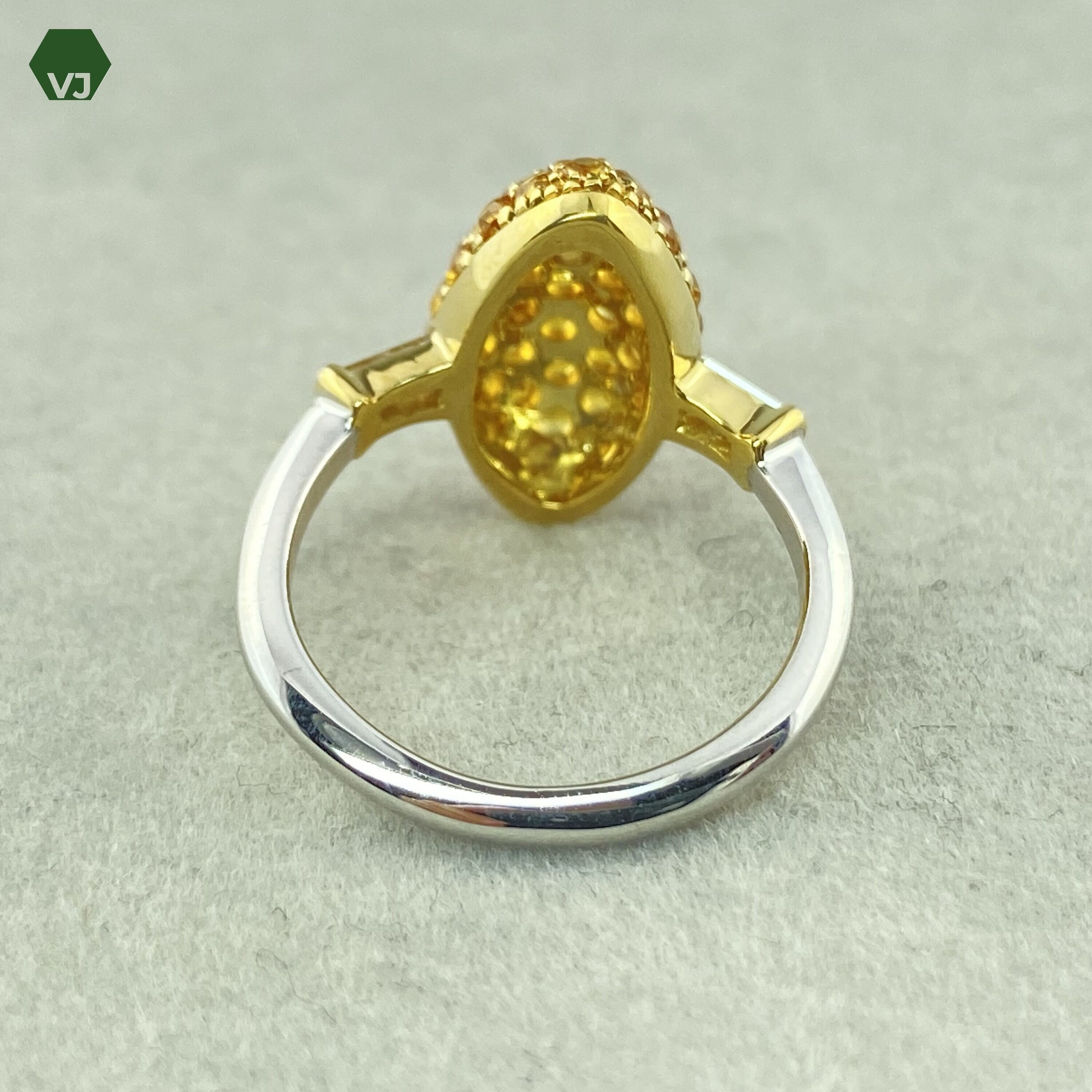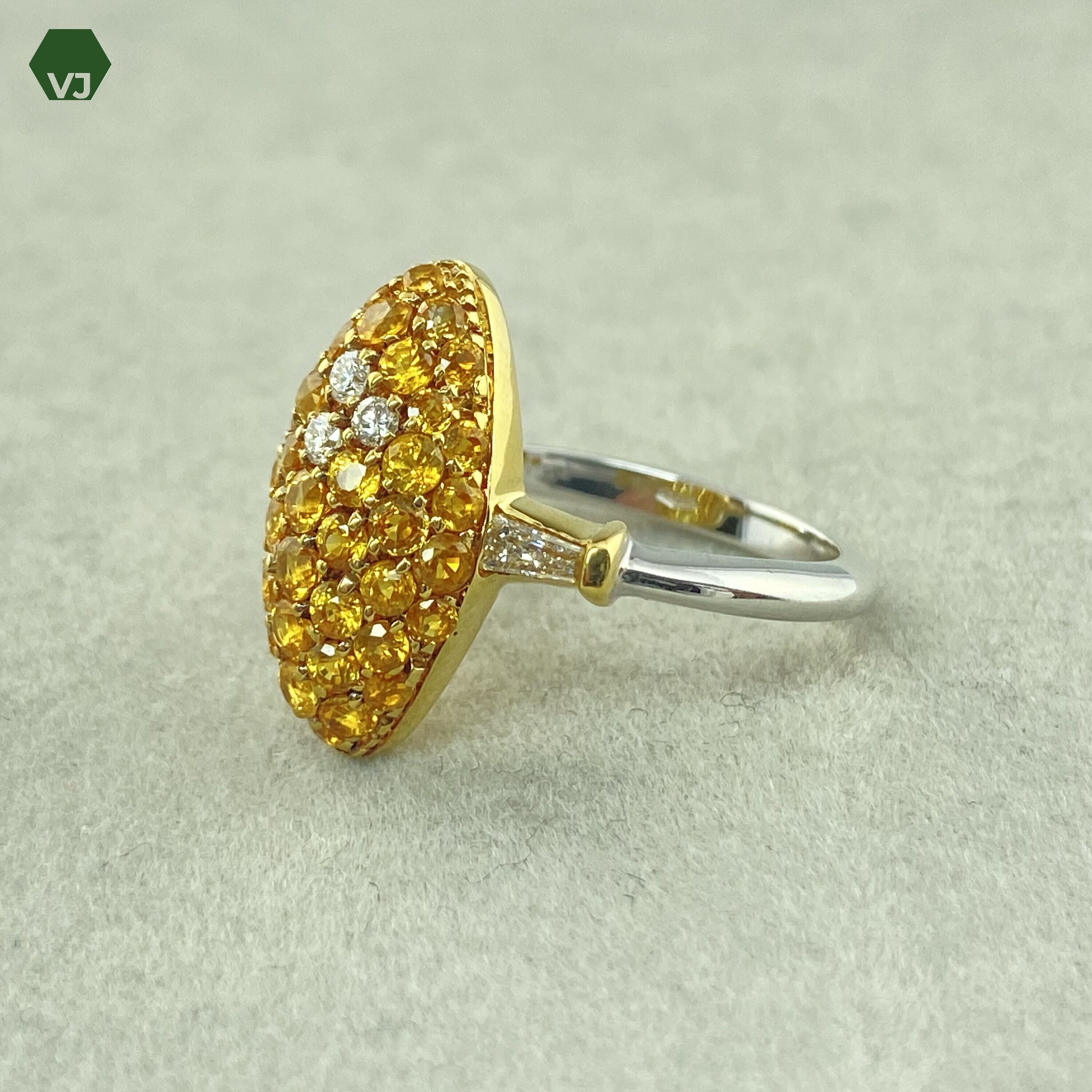 魅力的なイエローサファイアと輝くダイアモンドが織り成す、高級感漂うリングです。イエローサファイアの1.3カラットとダイアモンドの0.18カラットがあなたの指元を美しく飾ります。750の高品質素材を使用し、洗練されたデザインと鮮やかな輝きが一緒になったこのリングは、特別な日や普段使いにもぴったりです。