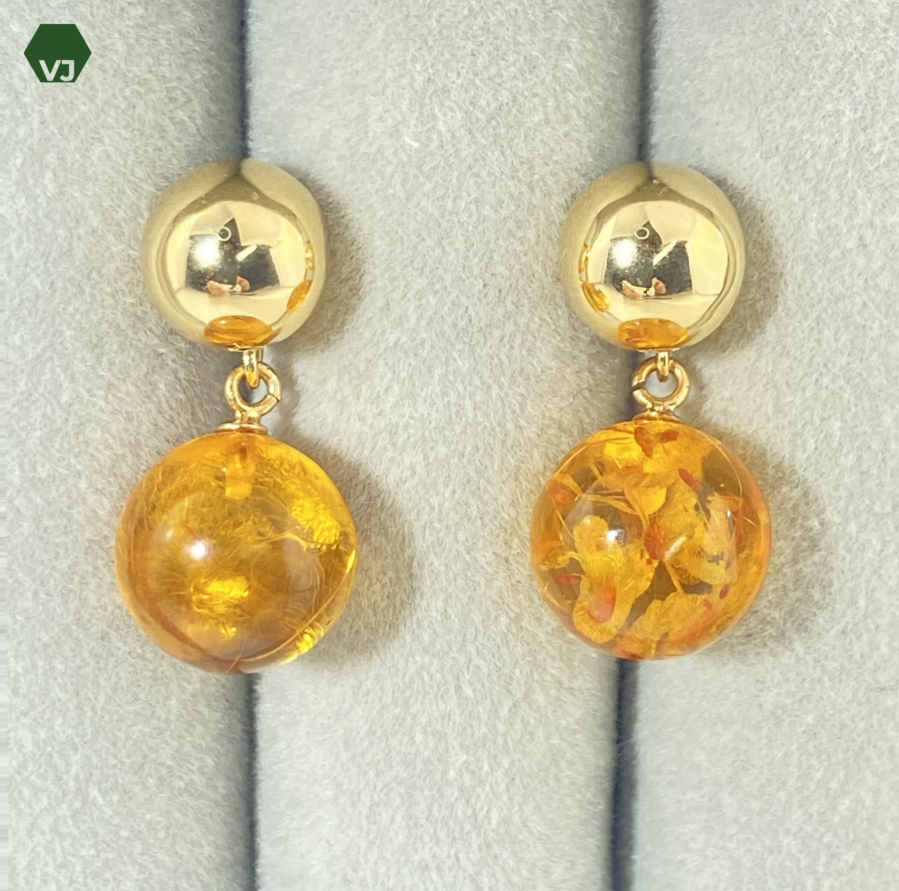 琥珀 ピアスは、上質な琥珀を使用した、ヴィンテージ感漂うアクセサリーです。K18YG素材を使用しており、高級感のある輝きを放ちます。直径8.81㎜のサイズ感もちょうど良く、耳元を上品に彩ります。ユニークな琥珀の模様は、それぞれ異なるため、一つずつ個性的なアイテムとしてお楽しみいただけます。昔ながらの工芸品への憧れを感じさせる、レトロでエレガントな印象のピアスです。他にはない特別な存在感で、コーディネートのアクセントにオススメです。