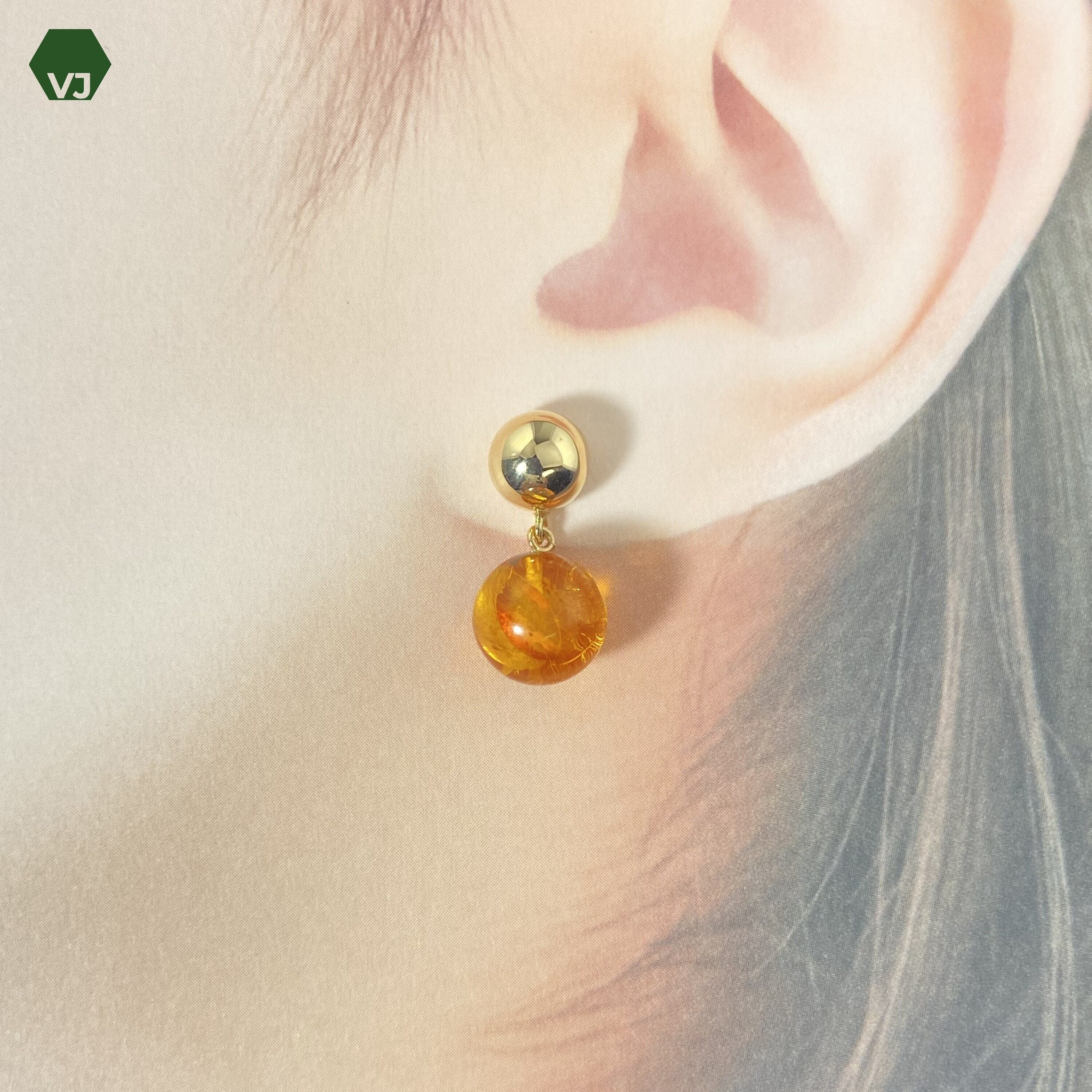 【12-23】琥珀 ピアス【中古】【K18YG】【直径8.81㎜】★By vivid-J