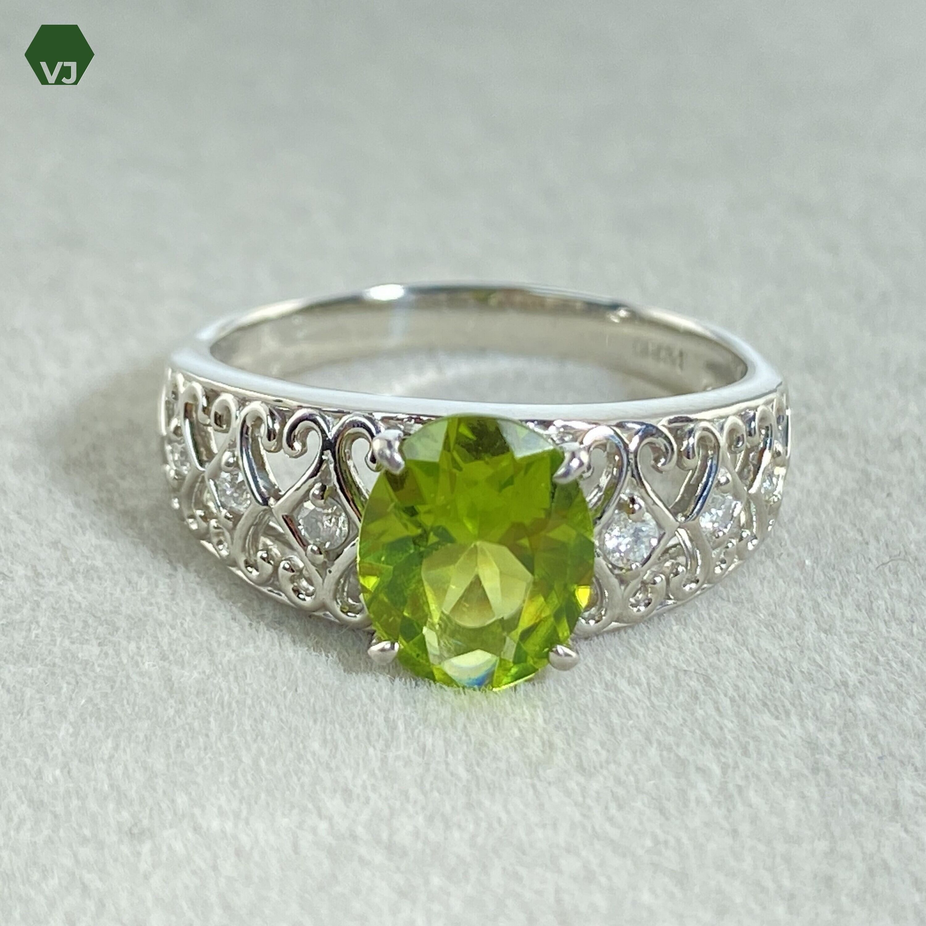 優雅な輝きを放つペリドットと輝くダイヤモンドが、指元を上質に彩るリングです。大粒の1.78ctのペリドットが中心に輝き、周囲を囲むようにセッティングされた0.13ctのダイヤモンドが華やかさをプラス。上質なPT900素材で仕上げられたリングは、指先からの華やかさを引き立てる一品です。