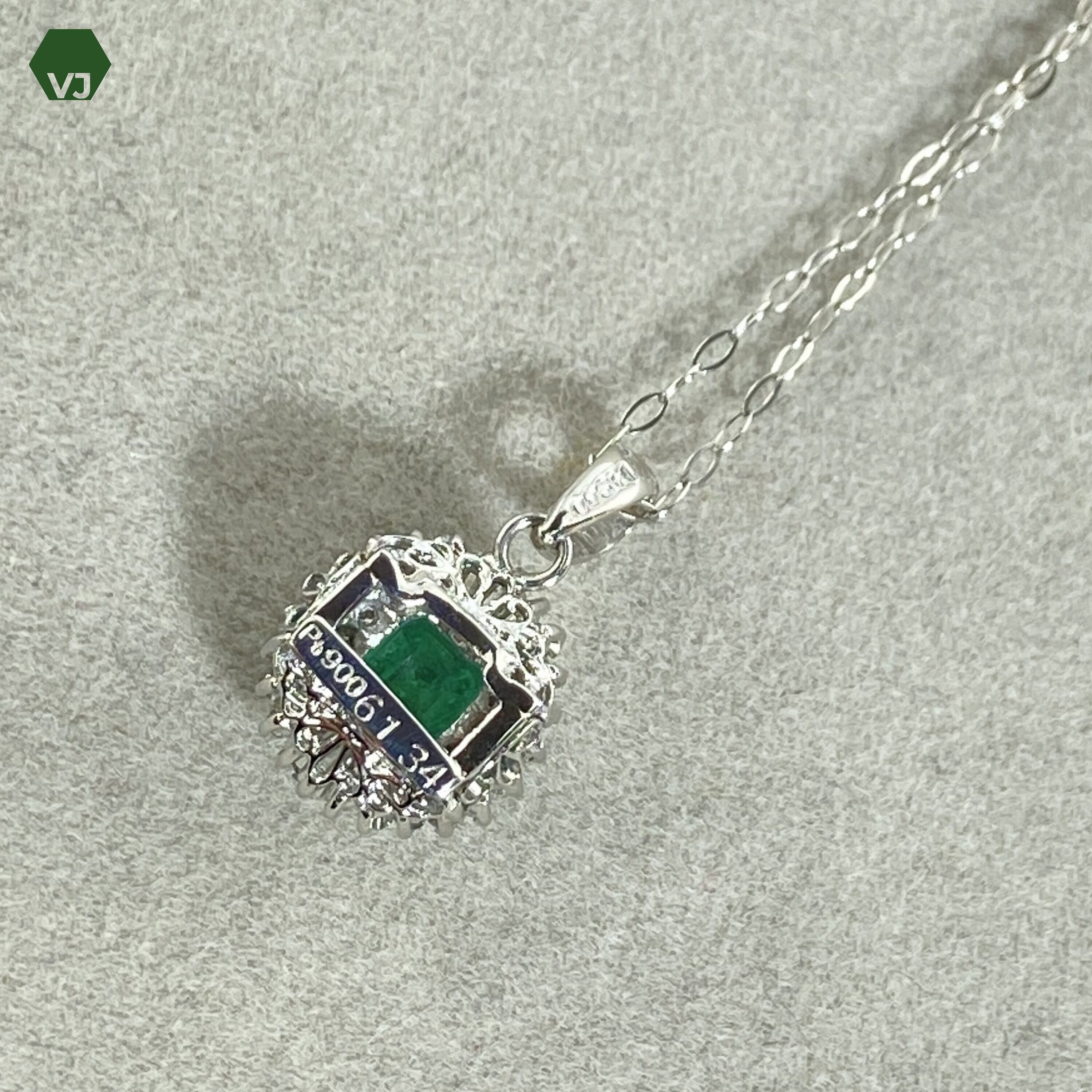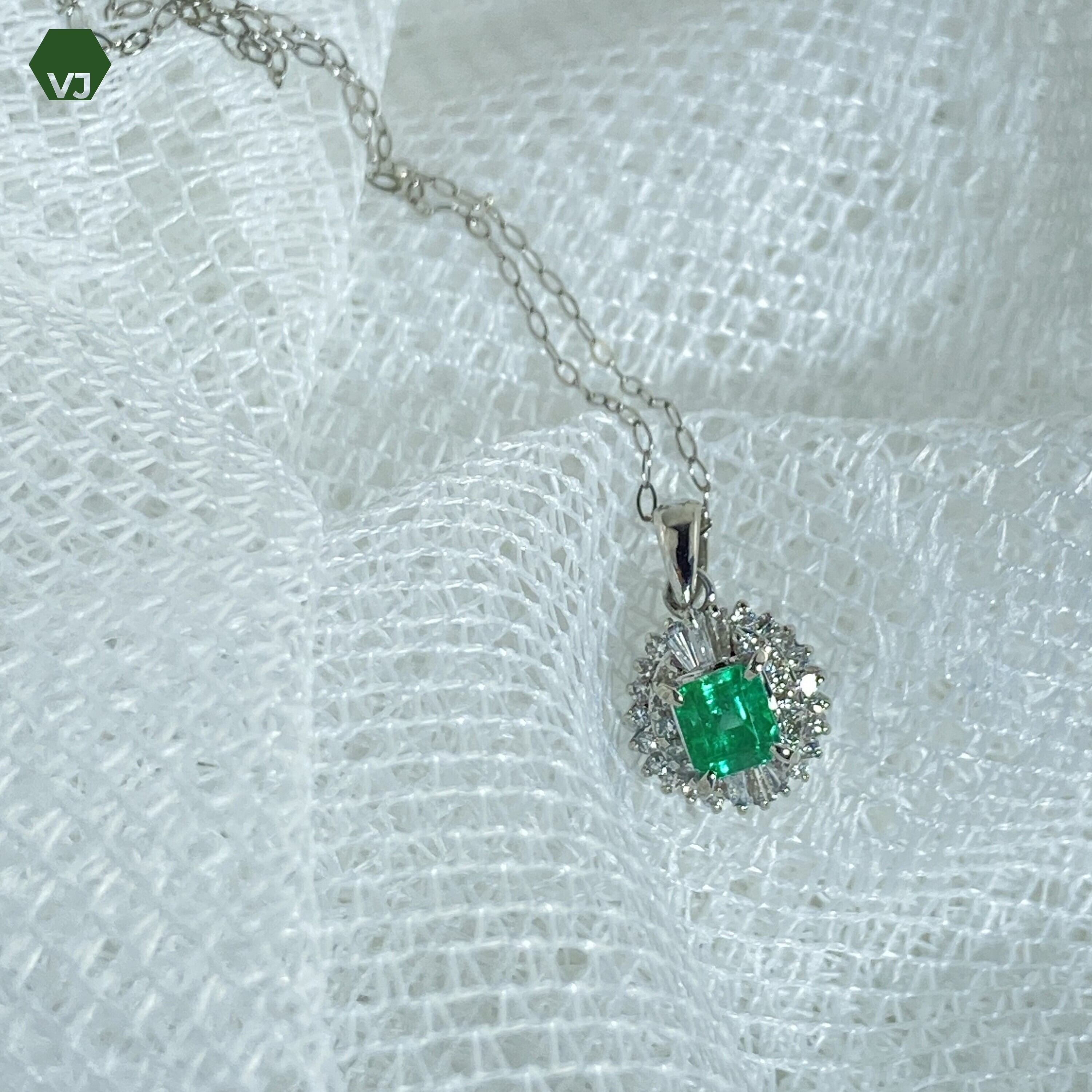【25‐18】エメラルド ダイヤモンド ネックレス E0.61ct D0.34ct【中古】【PT900/PT850】【40㎝】 ★By vivid-J