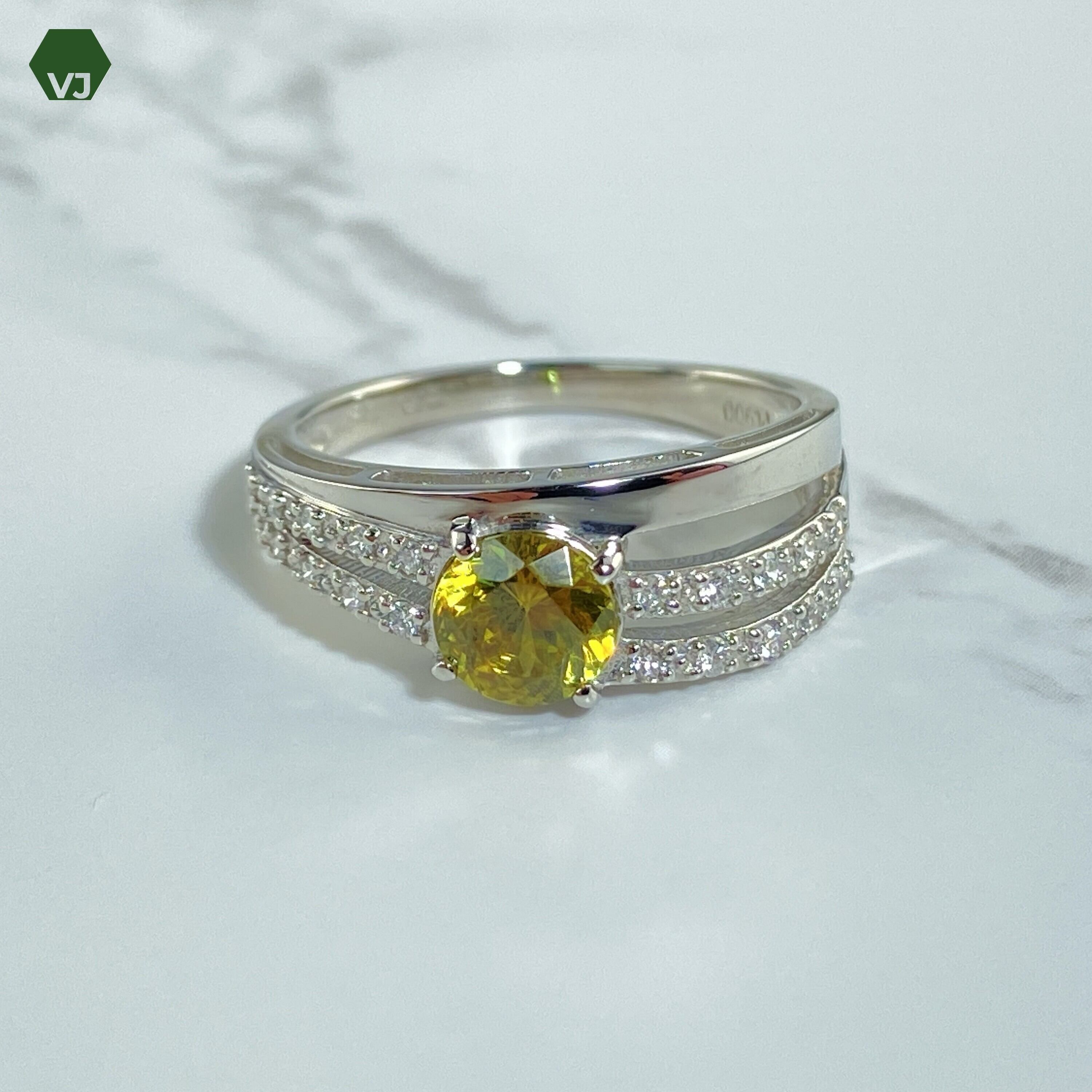 美しいスフェーンと輝くダイヤモンドが融合したリング。0.76ctのスフェーンと0.15ctのダイヤモンドが贅沢に施され、上品で華やかな輝きを放ちます。プラチナ900素材のリングは12号という大きめサイズで、存在感を放つアクセサリーです。