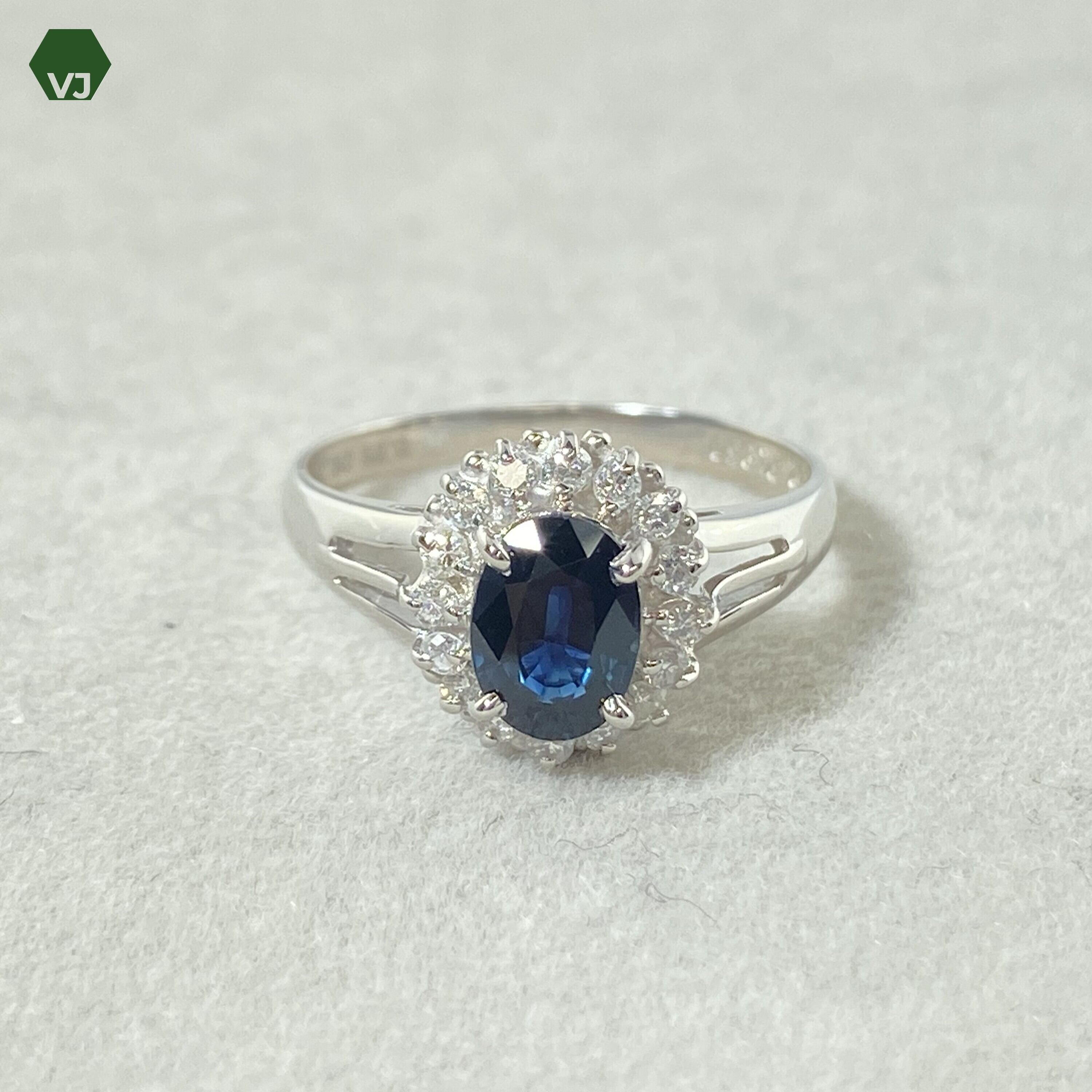 【15-05】サファイア ダイヤモンド リング S0.89ct D0.2ct【中古】【PT850】【11号】★By vivid-J