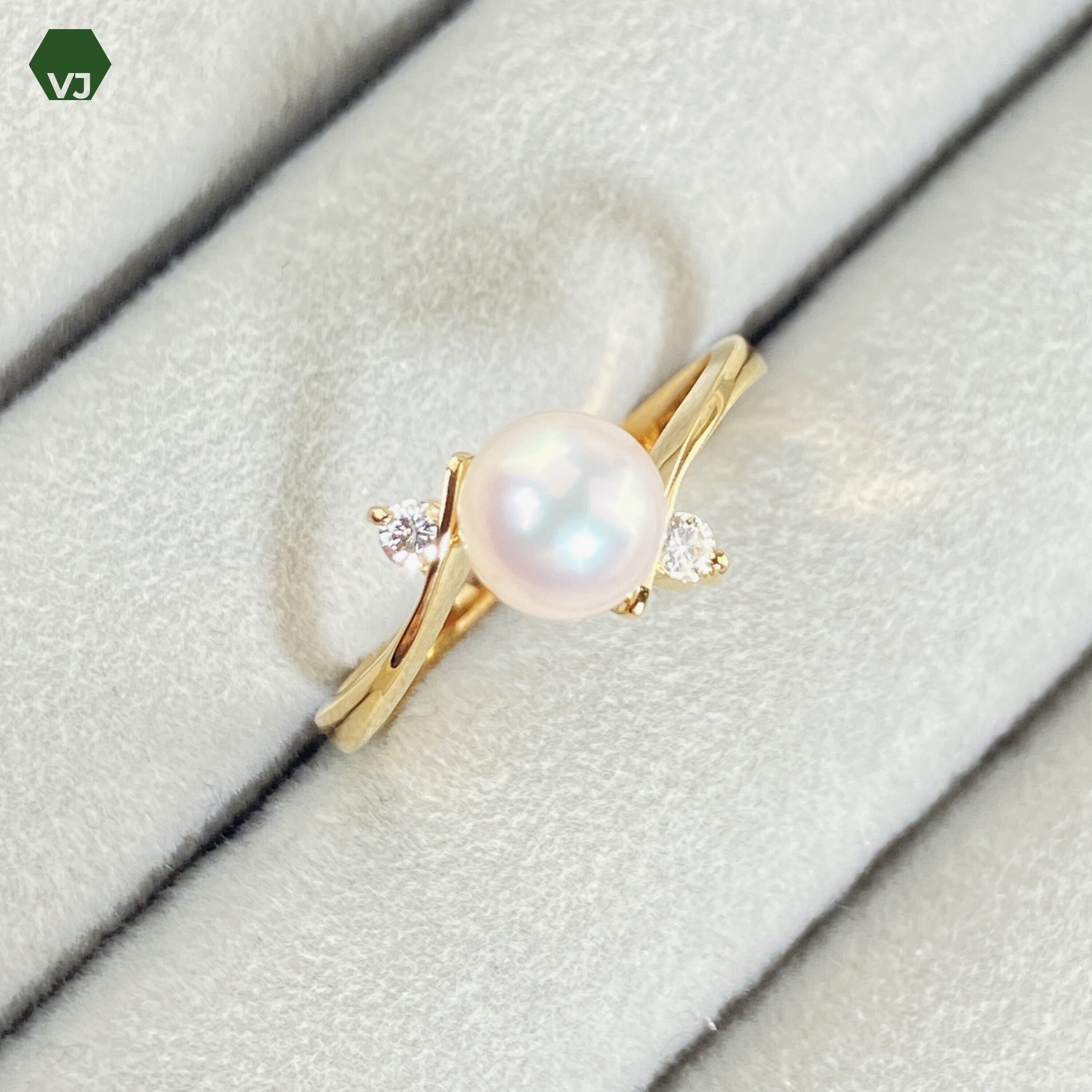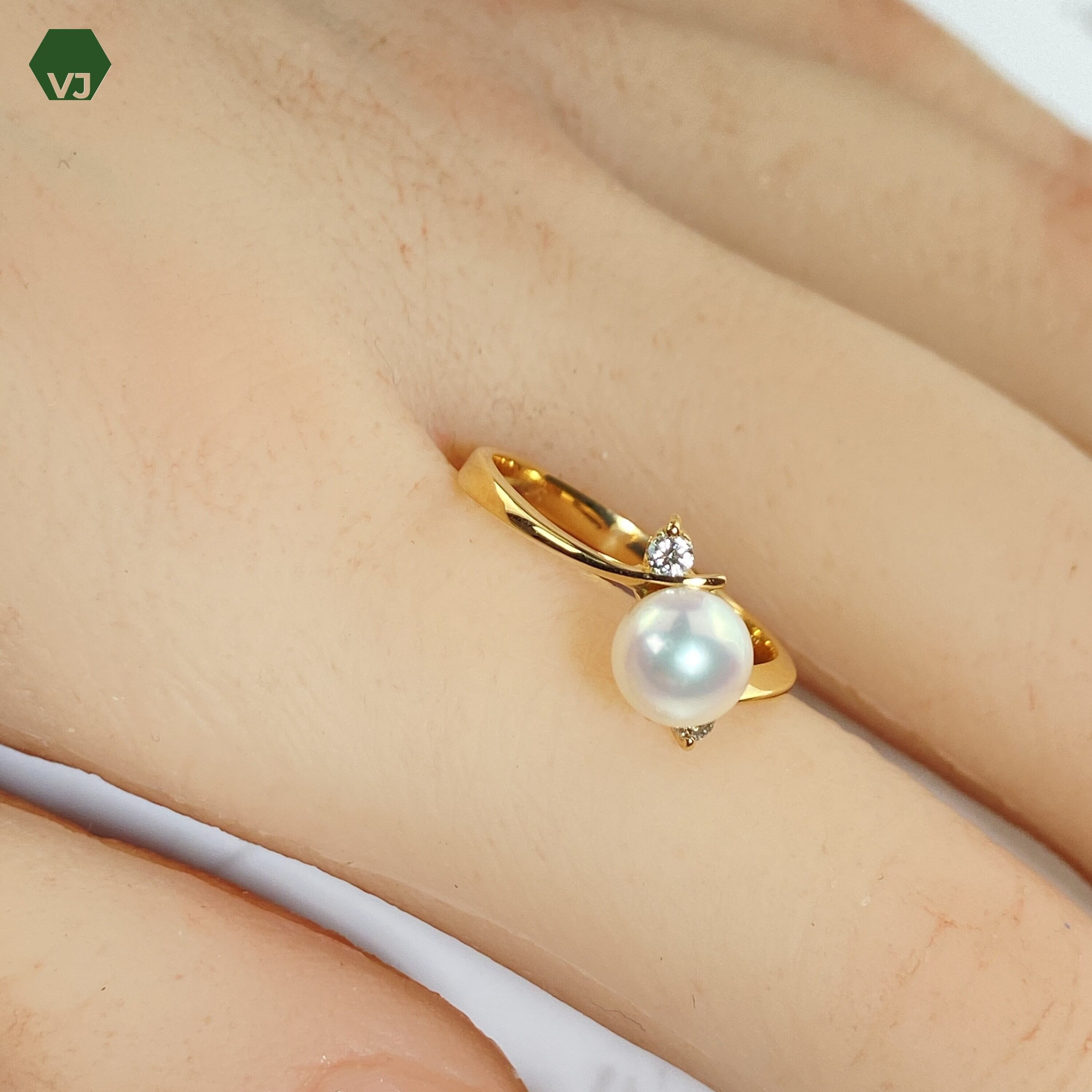 控えめなパールと輝くダイヤモンドが美しく融合した、上質なリングです。K18YG素材を使用し、高級感漂う仕上がりとなっております。9号のサイズで、リング指輪としては適度な存在感があります。華やかさと上品さを兼ね備えたアイテムです。