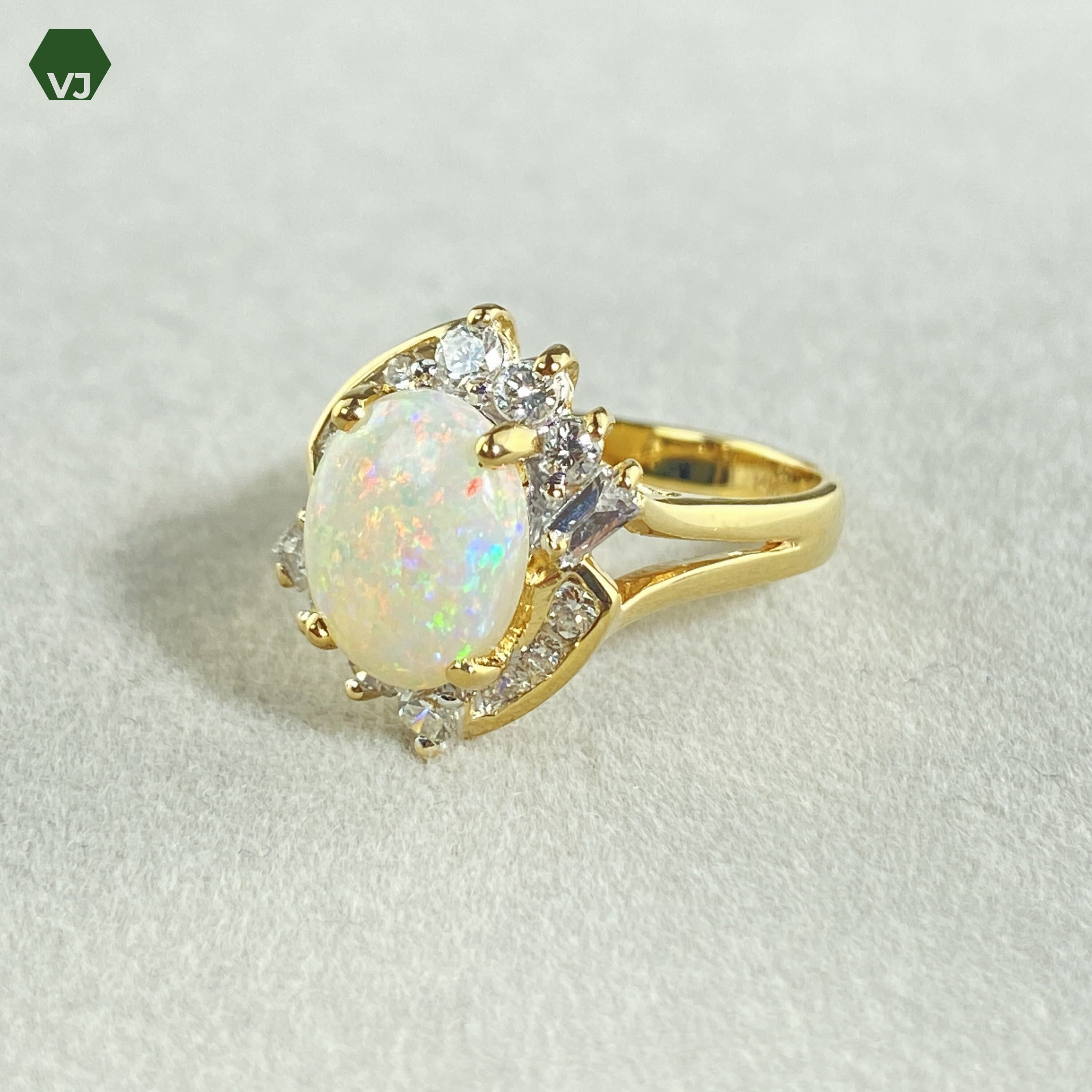 オパールとダイヤモンドで華やかなデザインで作られたK14YG素材のリング。