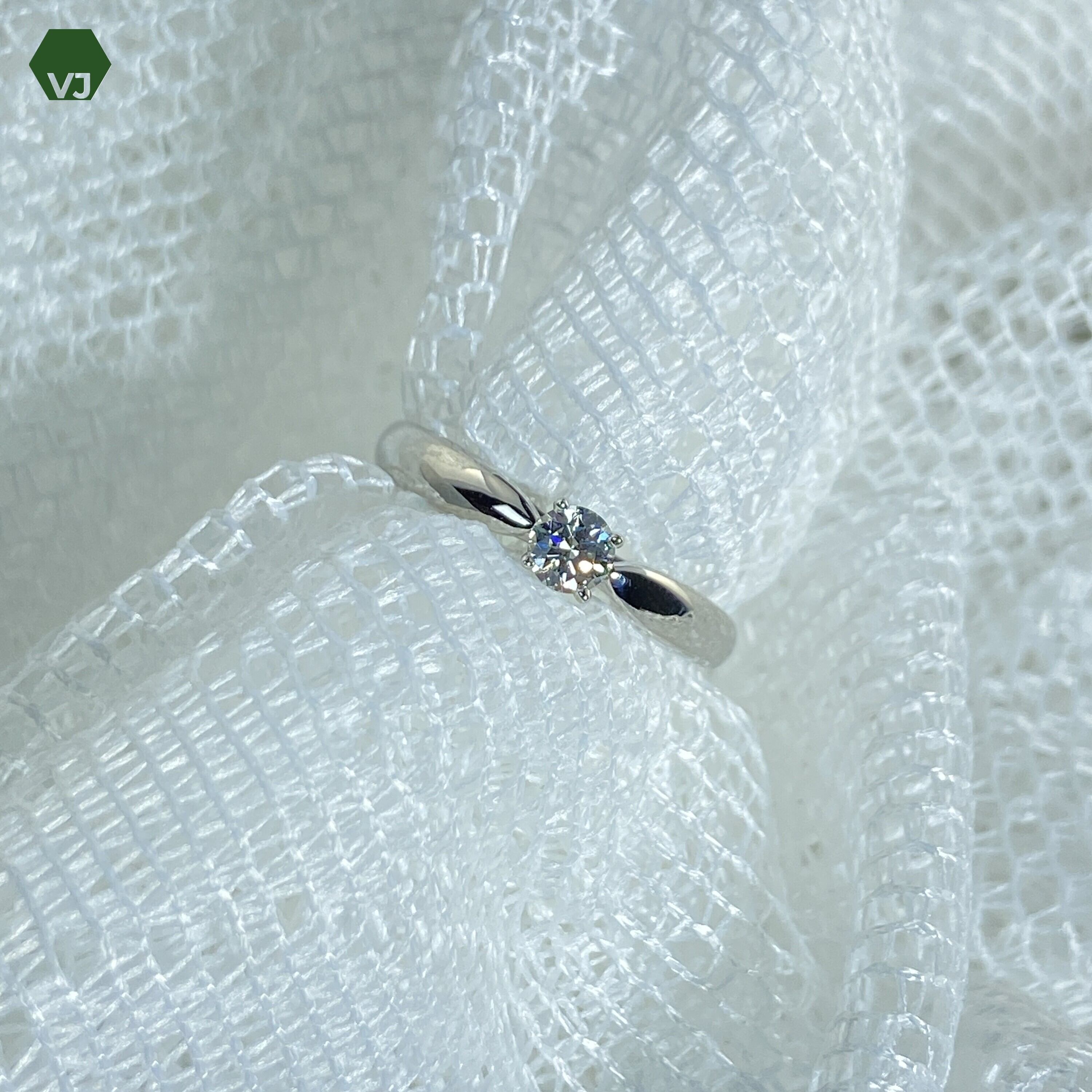 プラチナ素材のリングに、0.19ctのダイヤモンドが輝く贅沢なアイテム。