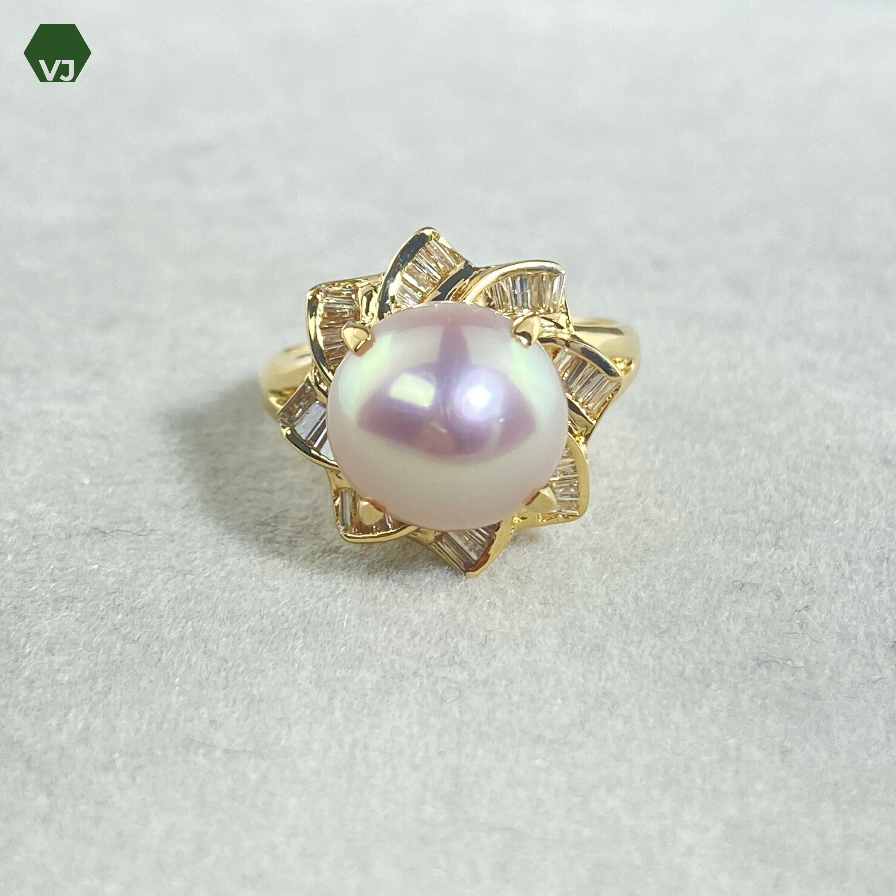 この華やかなリングは、どんなシーンでも存在感を放つ一品です。パールとダイヤモンドが上品に輝き、贅沢な輝きをプラス。どんなコーディネートにも合わせやすく、女性らしさを引き立てるアイテムとなっています。