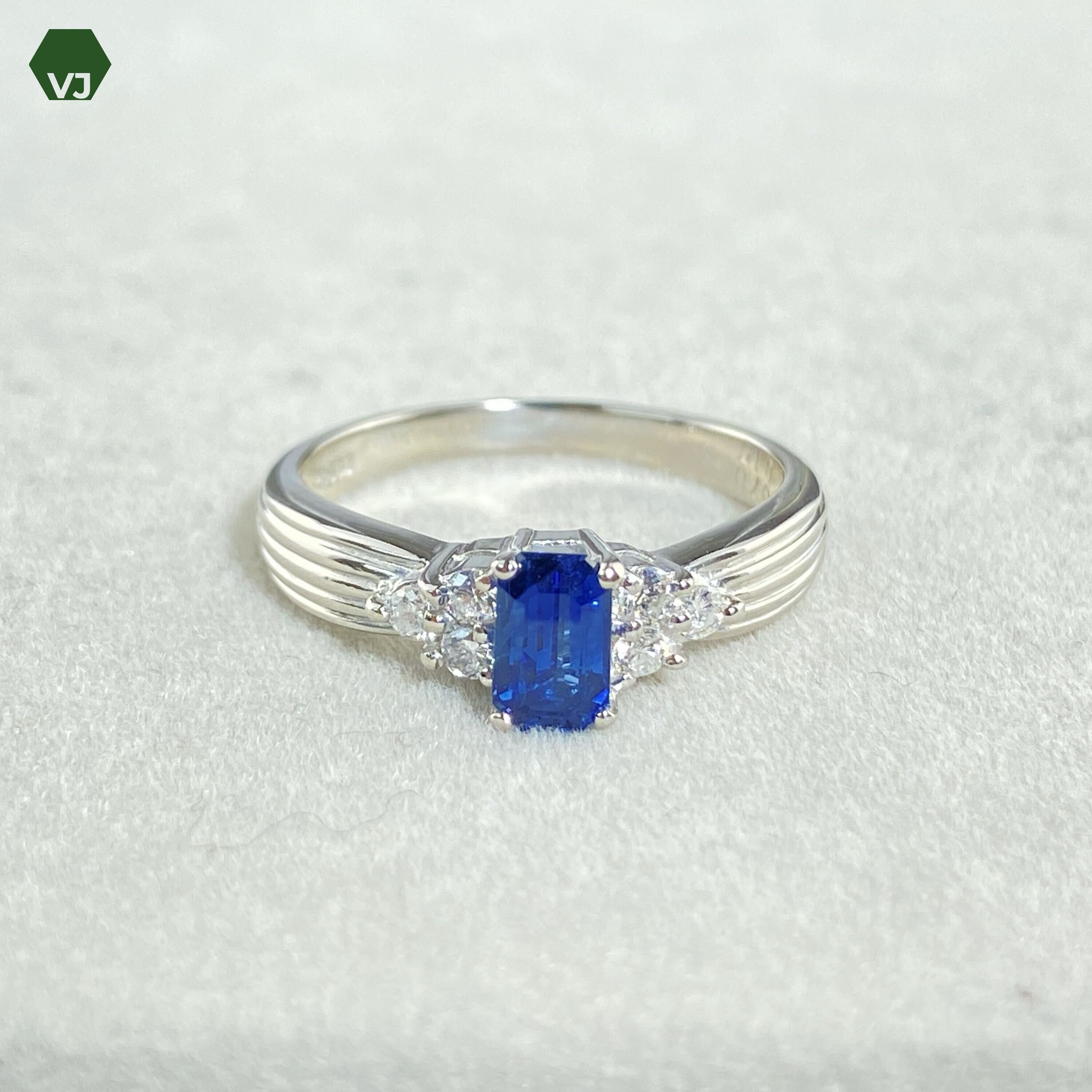 上質なサファイアとダイヤモンドを使用した、プラチナ900製リング。繊細で美しいデザイン。