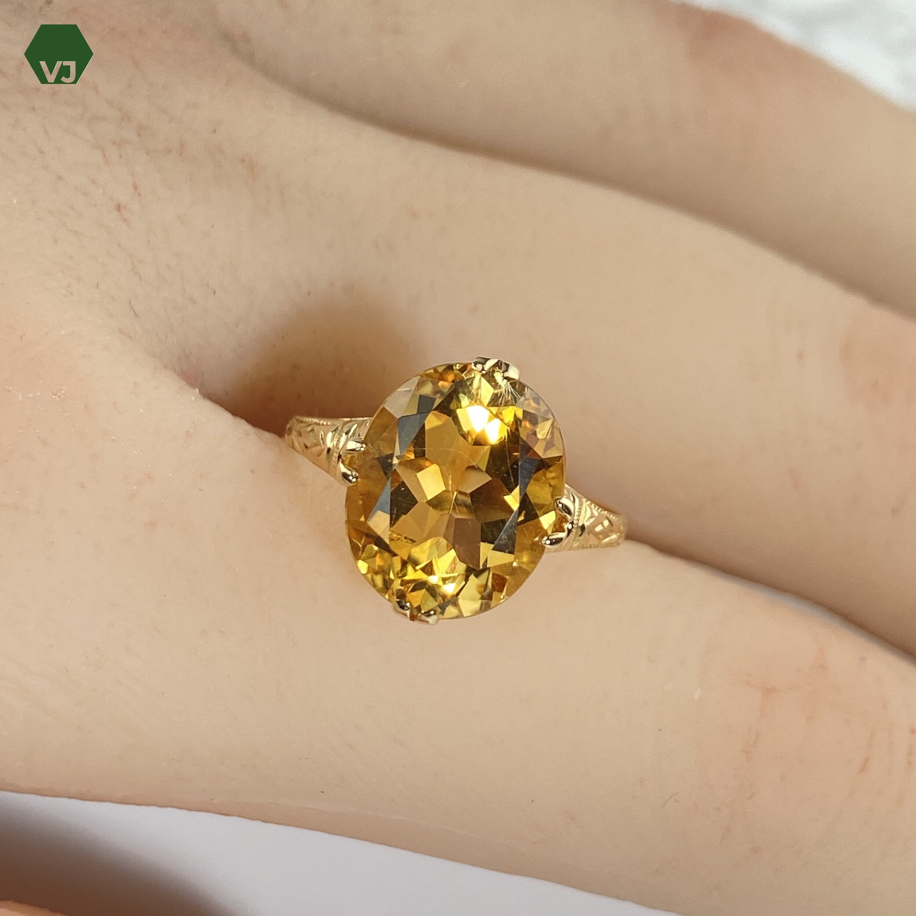 これは、古き良き時代の魅力が詰まったリング。数々の手に渡ってきた歴史とエネルギーが込められた、特別なアンティークジュエリーです。シトリンの輝きが、あなたの日常に幸せなエネルギーをもたらし、周りを明るく照らしてくれることでしょう。