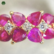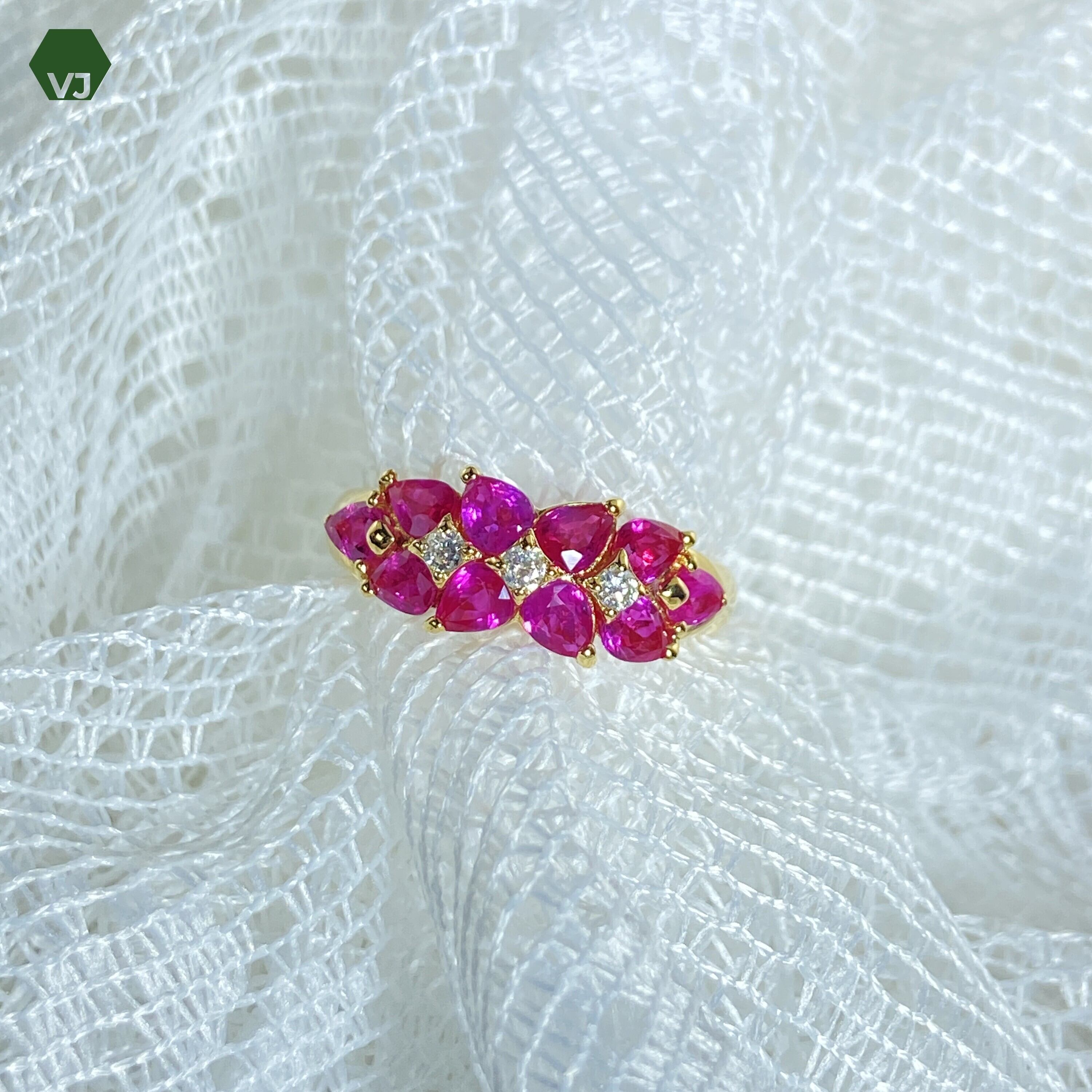 ルビーとダイヤモンドが輝く、上質なダイヤモンドリング。深い赤が魅力のルビーと輝くダイヤモンドの美しいコントラストが、華やかさを演出します。贅沢なデザインでありながら、どんなシーンにも合わせやすく、存在感抜群の一品です。
