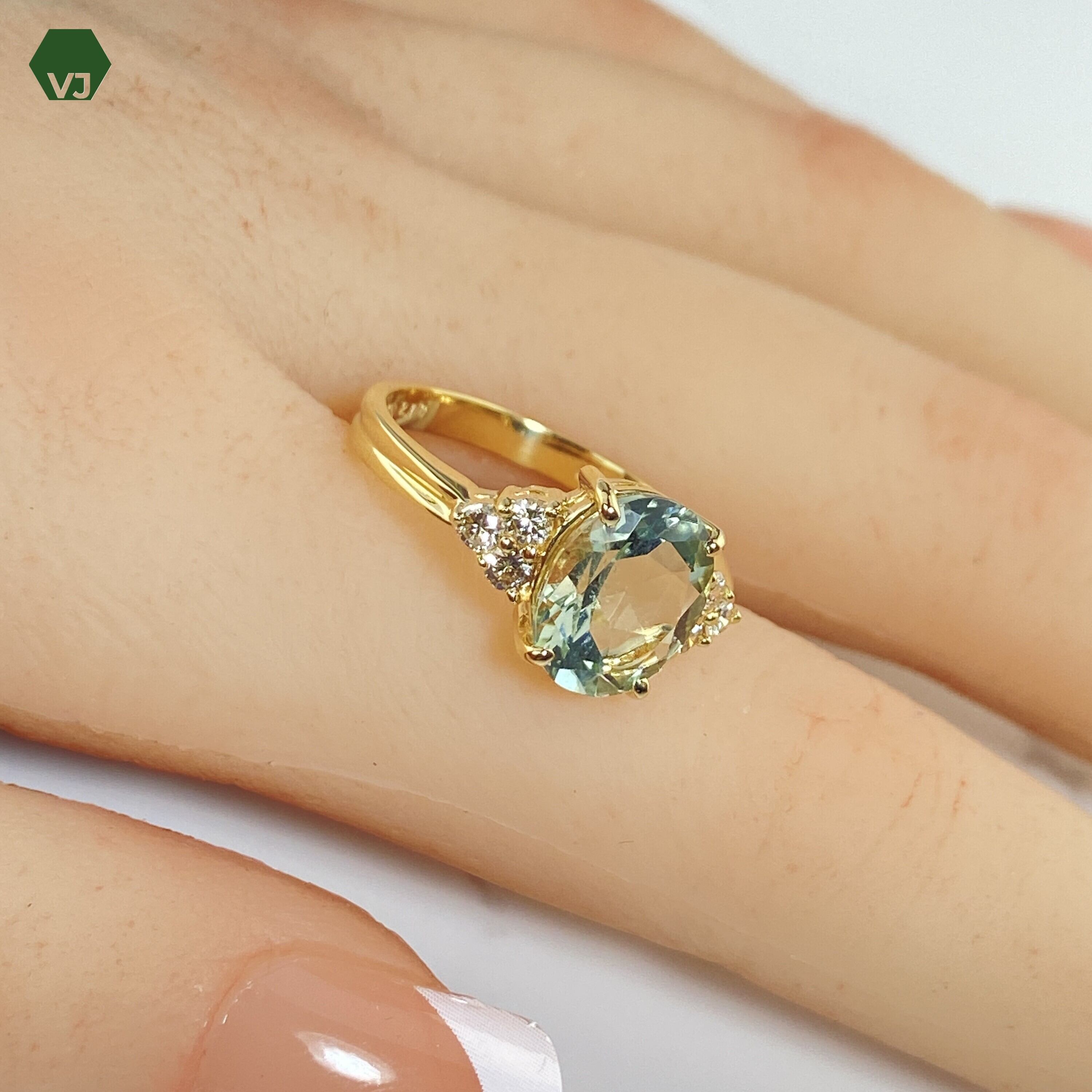 【26-05】 グリーンアメジスト ダイヤモンド リング 2.13ct D0.21ct【中古】【K18YG】【13号】★By vivid-J