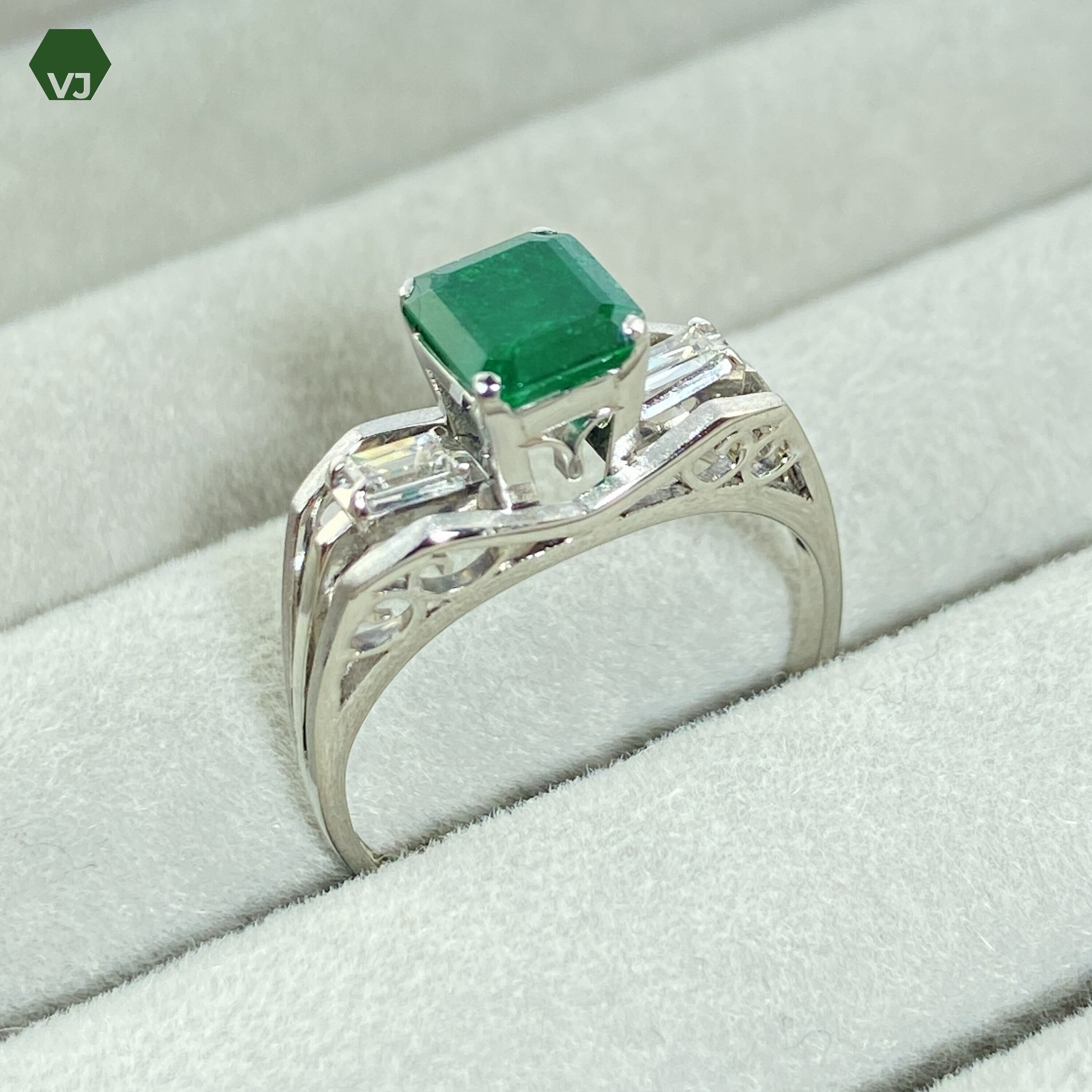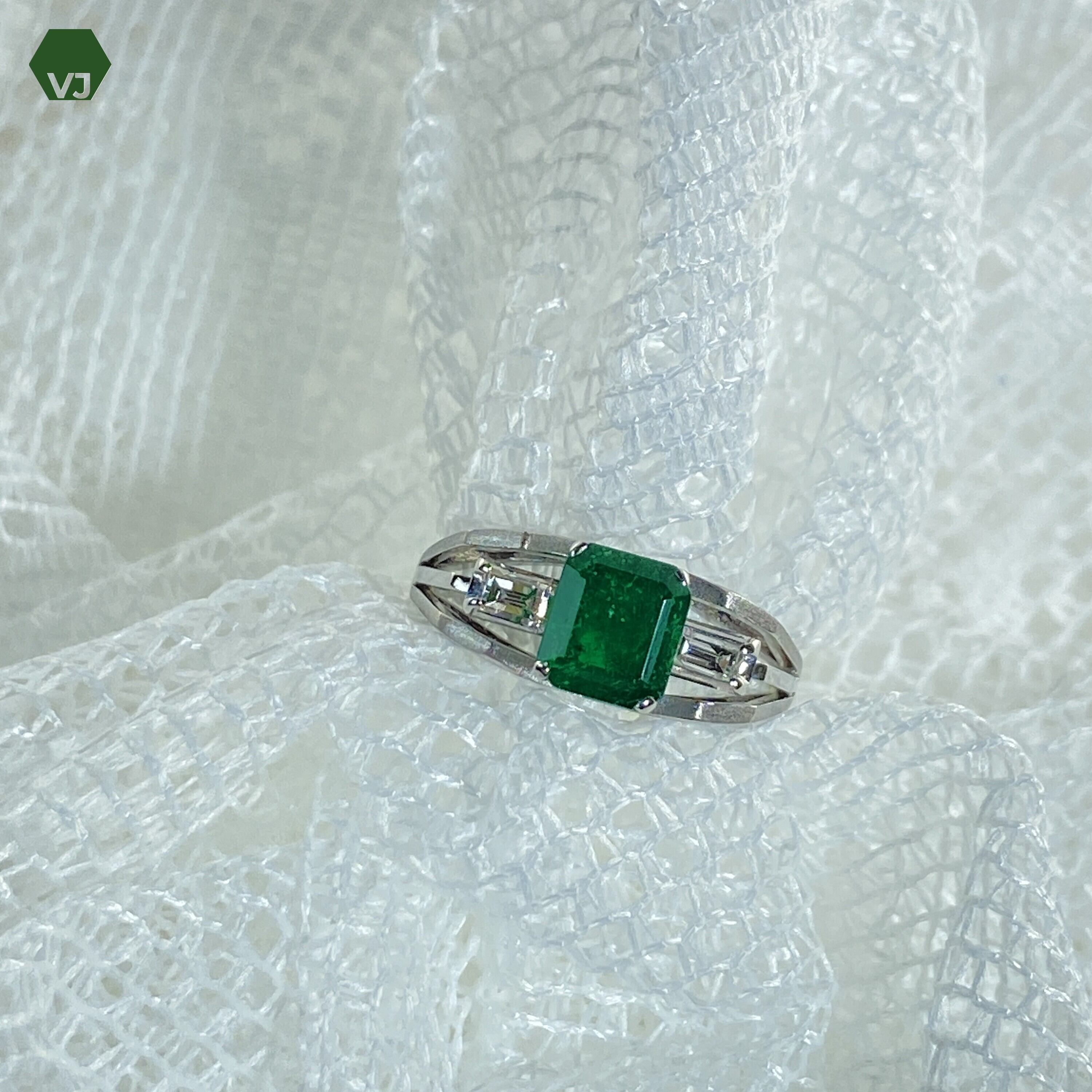 エメラルドとダイヤモンドの輝きが織りなす贅沢な輝き。Vintageな魅力が満載のエメラルドダイヤモンドリングが登場しました。0.82ctのエメラルドとキラキラ輝くダイヤモンドが上品なハーモニーを奏で、指先を華やかに彩ります。プラチナ素材でありながらも、しっかりとした作りで永く愛用していただける逸品です。