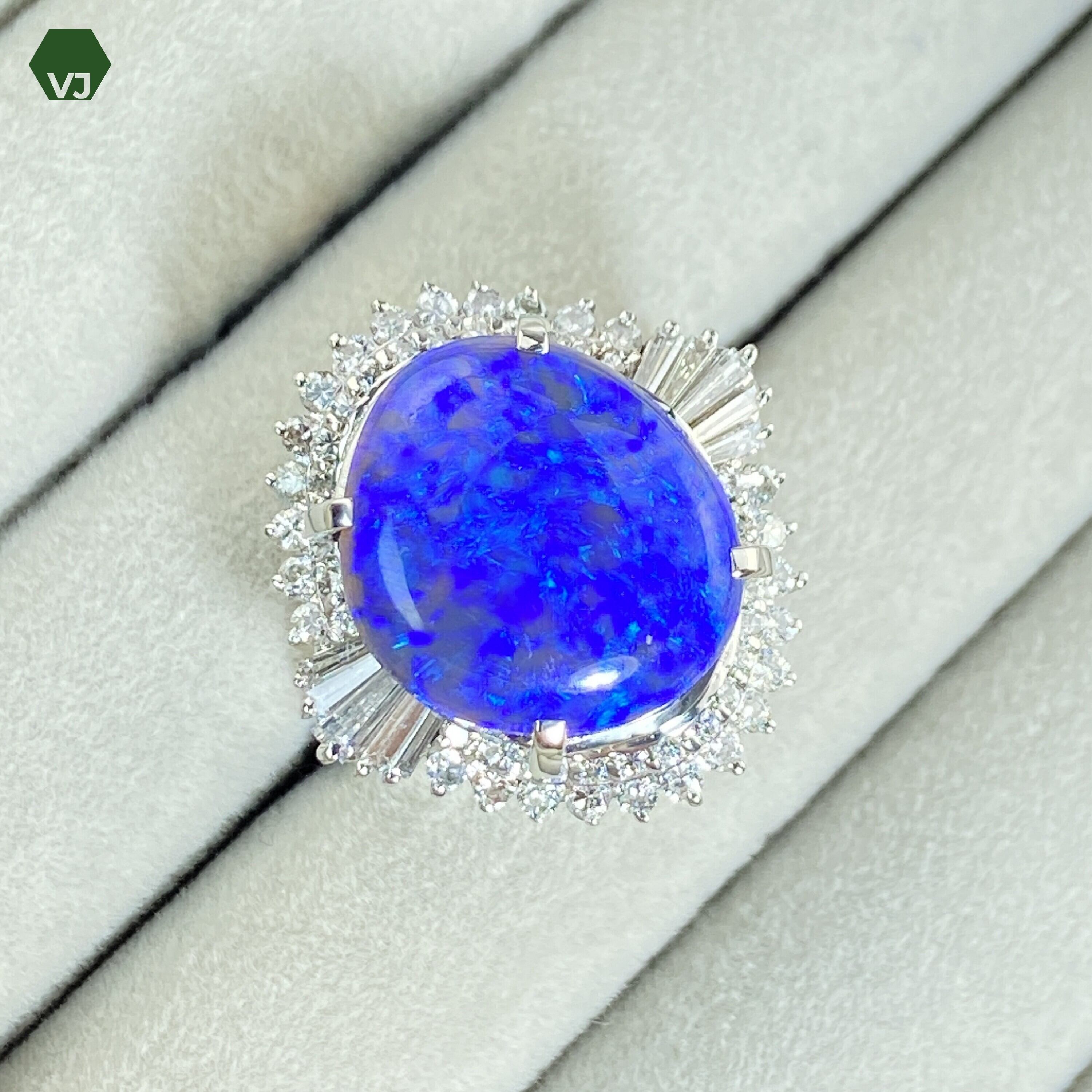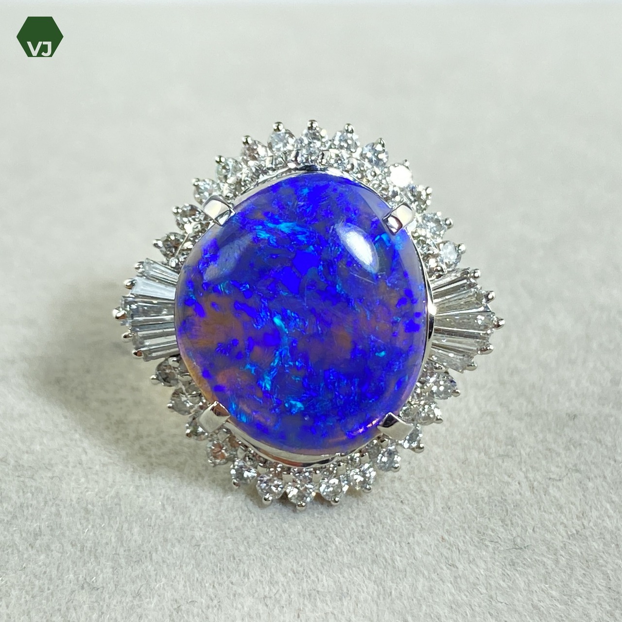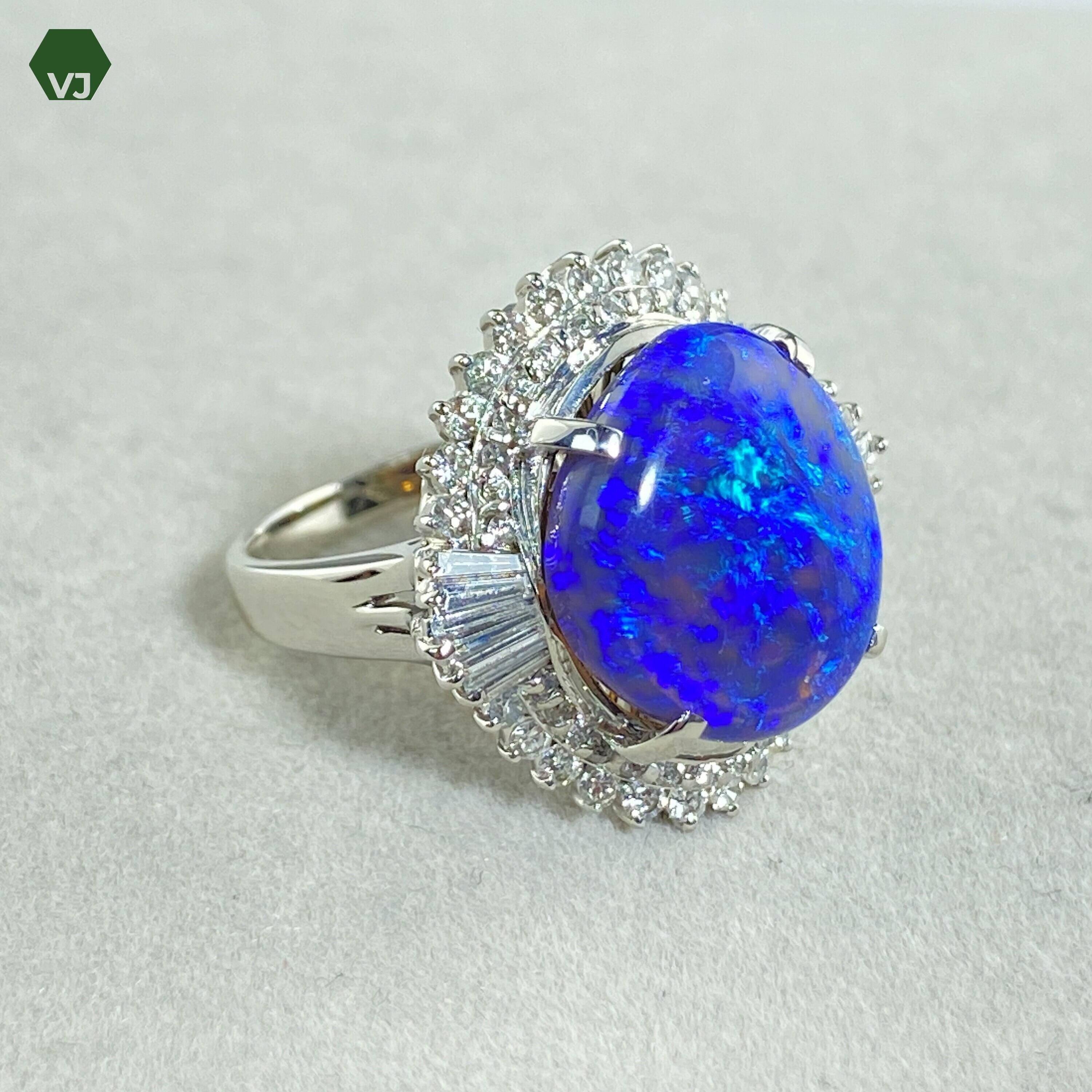 あなたの指先に、深い輝きと宝石の魅力を。ブラックオパールとダイヤモンドの組み合わせは、まるで幻想的な星空をイメージさせます。日常を彩り豊かな特別な日々へと導く、高級感溢れるジュエリーです。