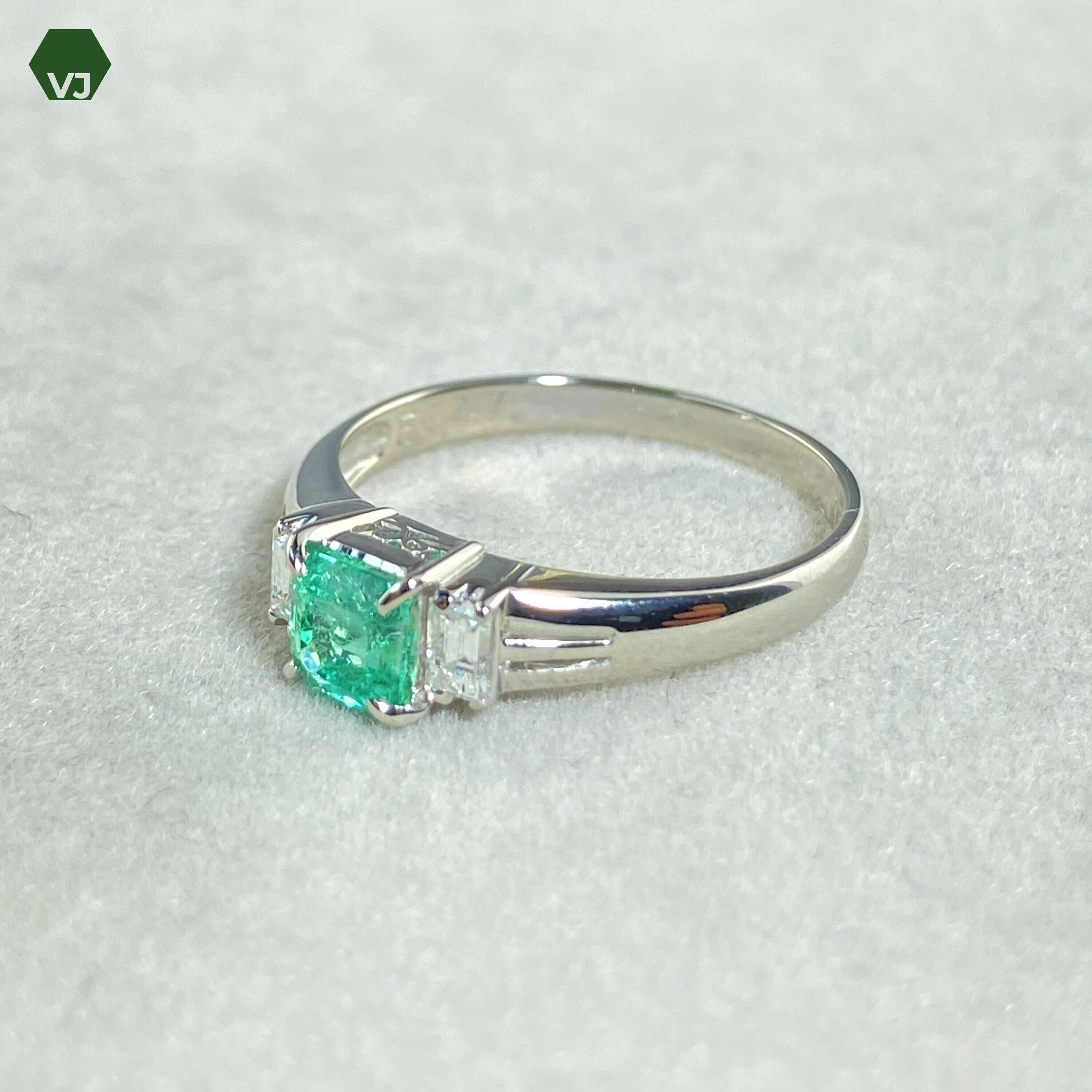 エメラルドとダイヤモンドの輝きが美しいリング。エメラルドの0.47カラットとダイヤモンドの0.17カラットの輝きが華やかなアクセントを添えています。プラチナ900素材の上質なリングは、上品な輝きと高いクオリティーが魅力です。