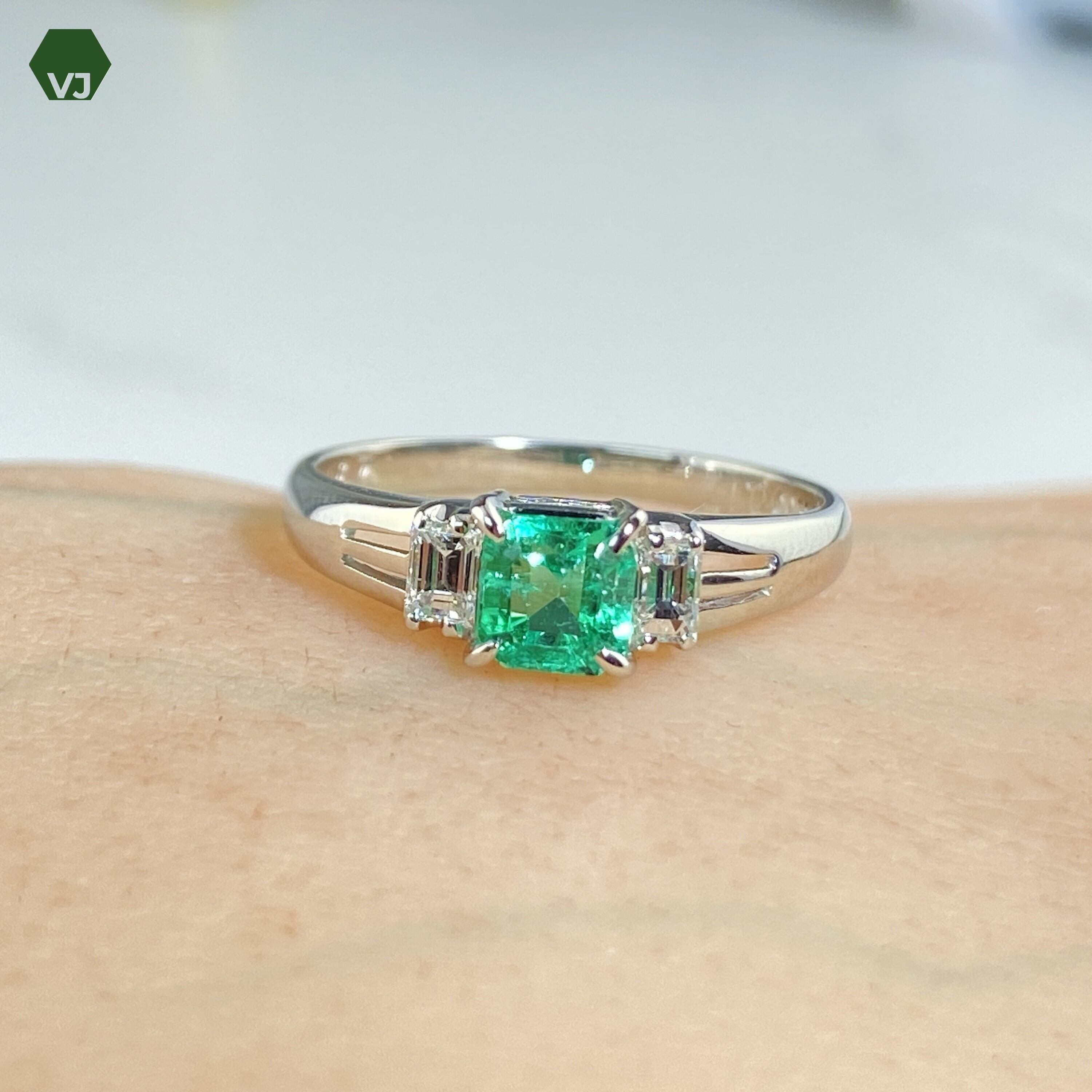 エメラルドの緑とダイヤモンドの輝きが、あなたの手元に宝石のような輝きをもたらします。究極のリッチ感と高級感を感じさせるリングで、特別な日や普段使いにもおすすめです。