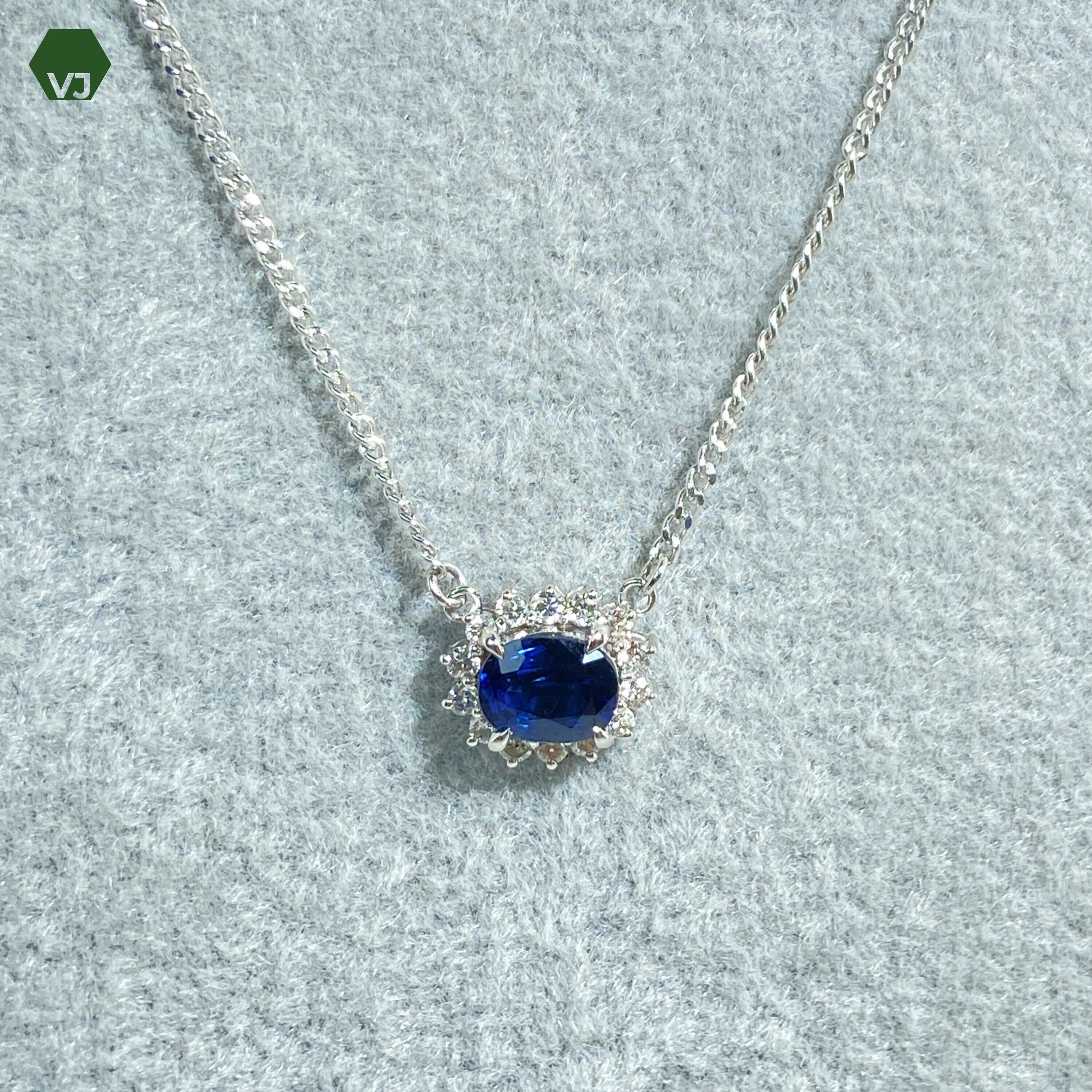 このネックレスの胸元に飾られたサファイアとダイヤモンドは、あなたの魅力を一段と引き立ててくれることでしょう。贅沢な輝きを身に纏い、特別な日や大切な場面に彩りを添えてください。
