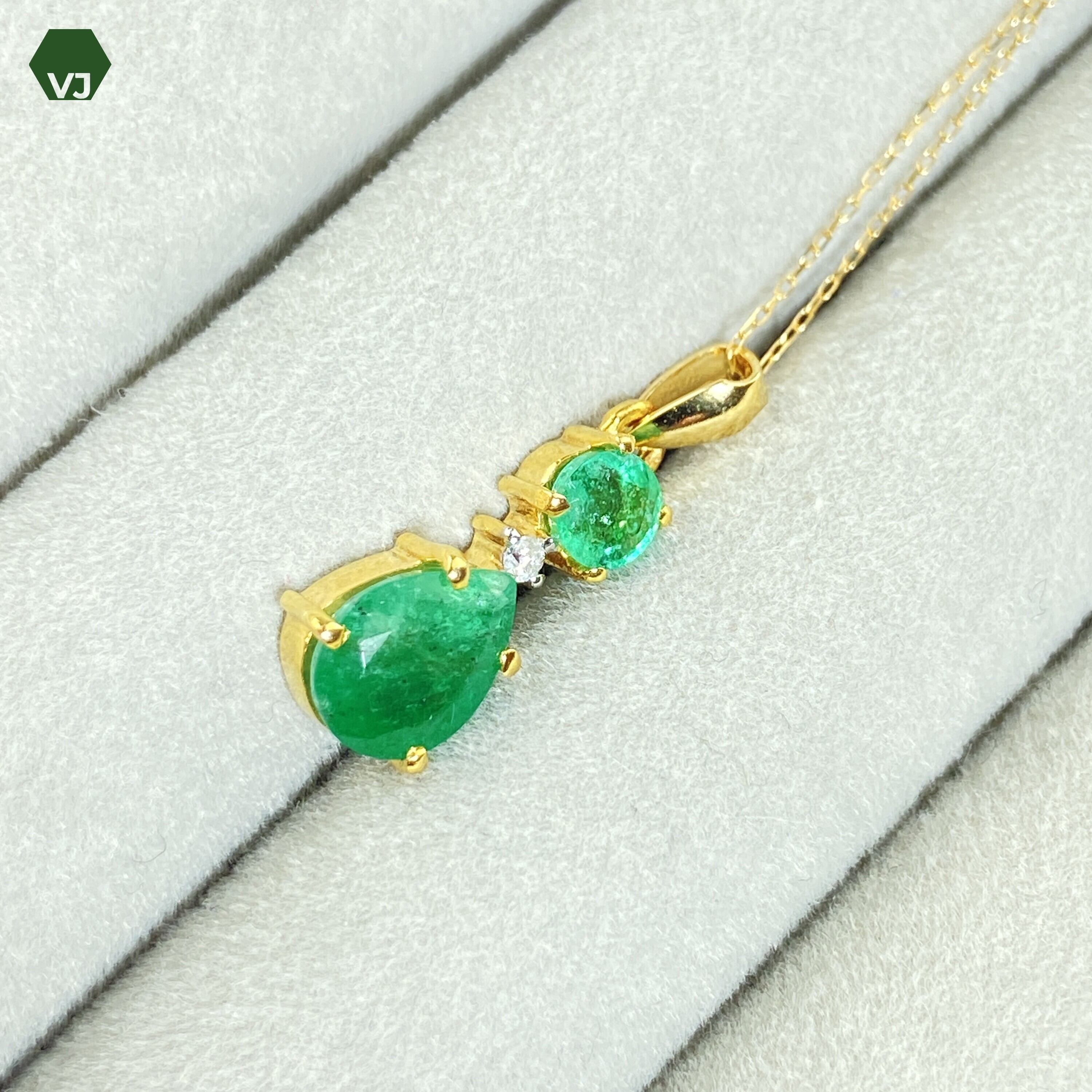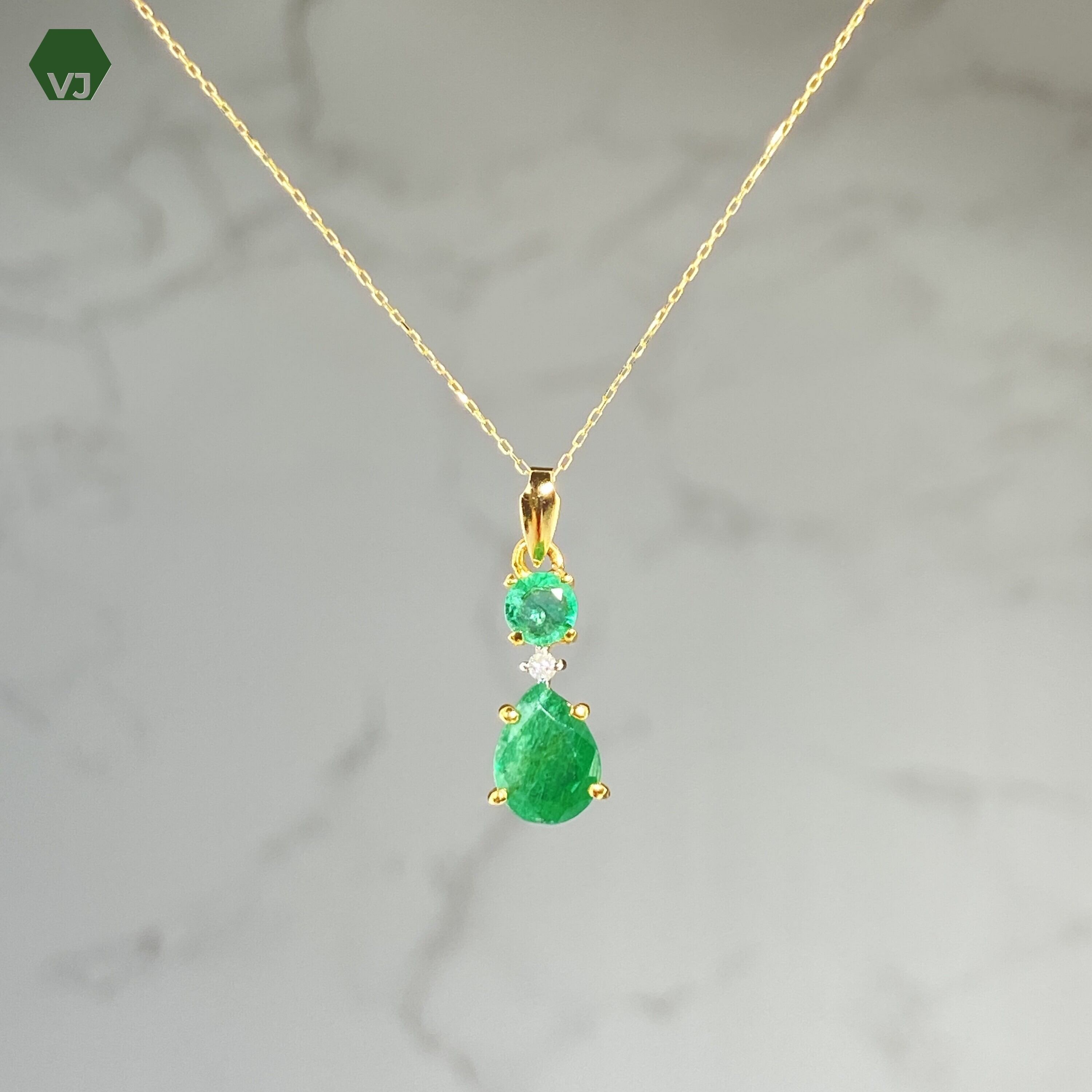 ラグジュアリーなエメラルドと輝くダイヤモンドが華やかなネックレス。K18YG素材で上質な輝きを放つアイテム。シンプルなデザインながらも存在感抜群で、コーディネートのアクセントに最適です。普段使いはもちろん、パーティーシーンでの華やかな装いにもピッタリ。自分へのご褒美や大切な人への贈り物にもおすすめです。